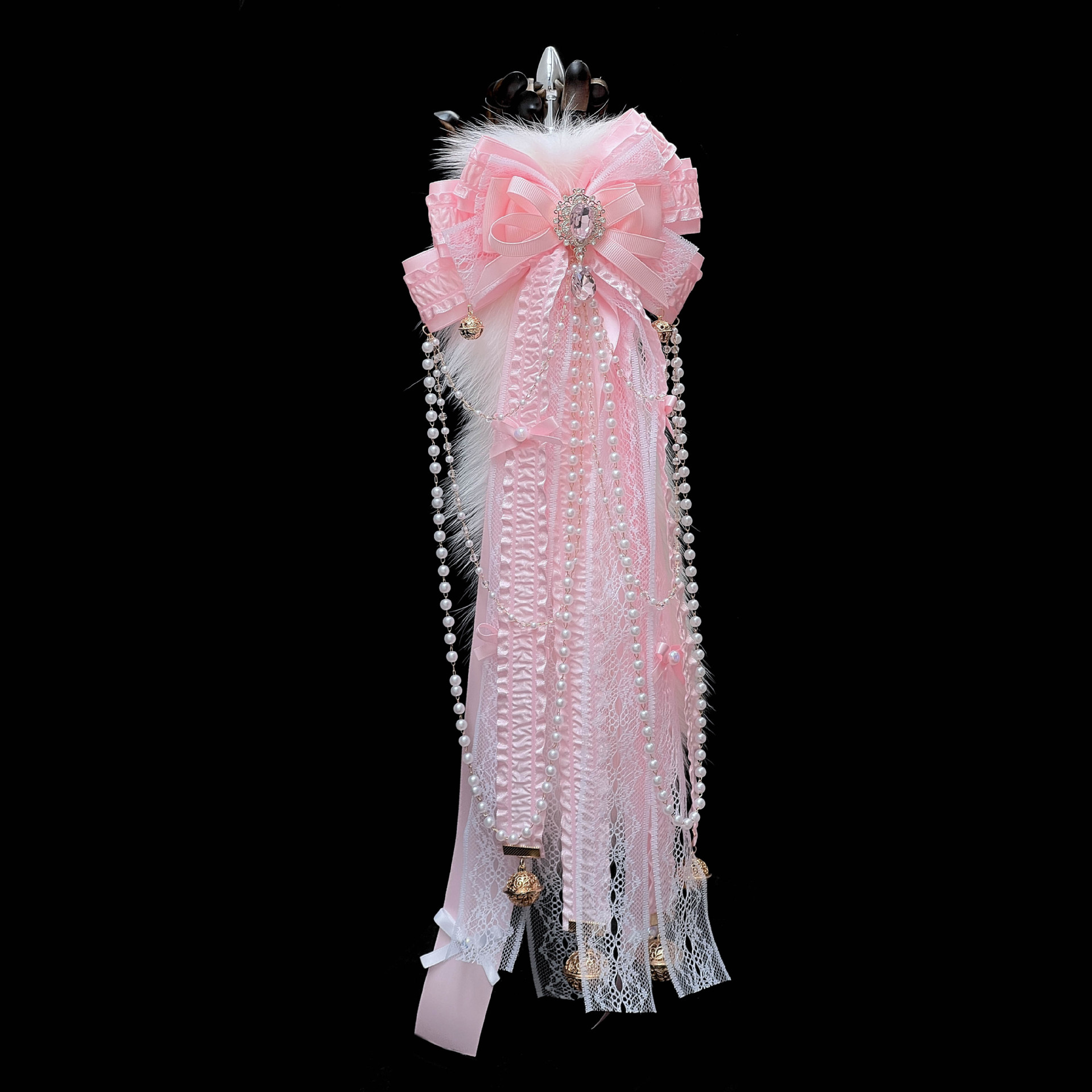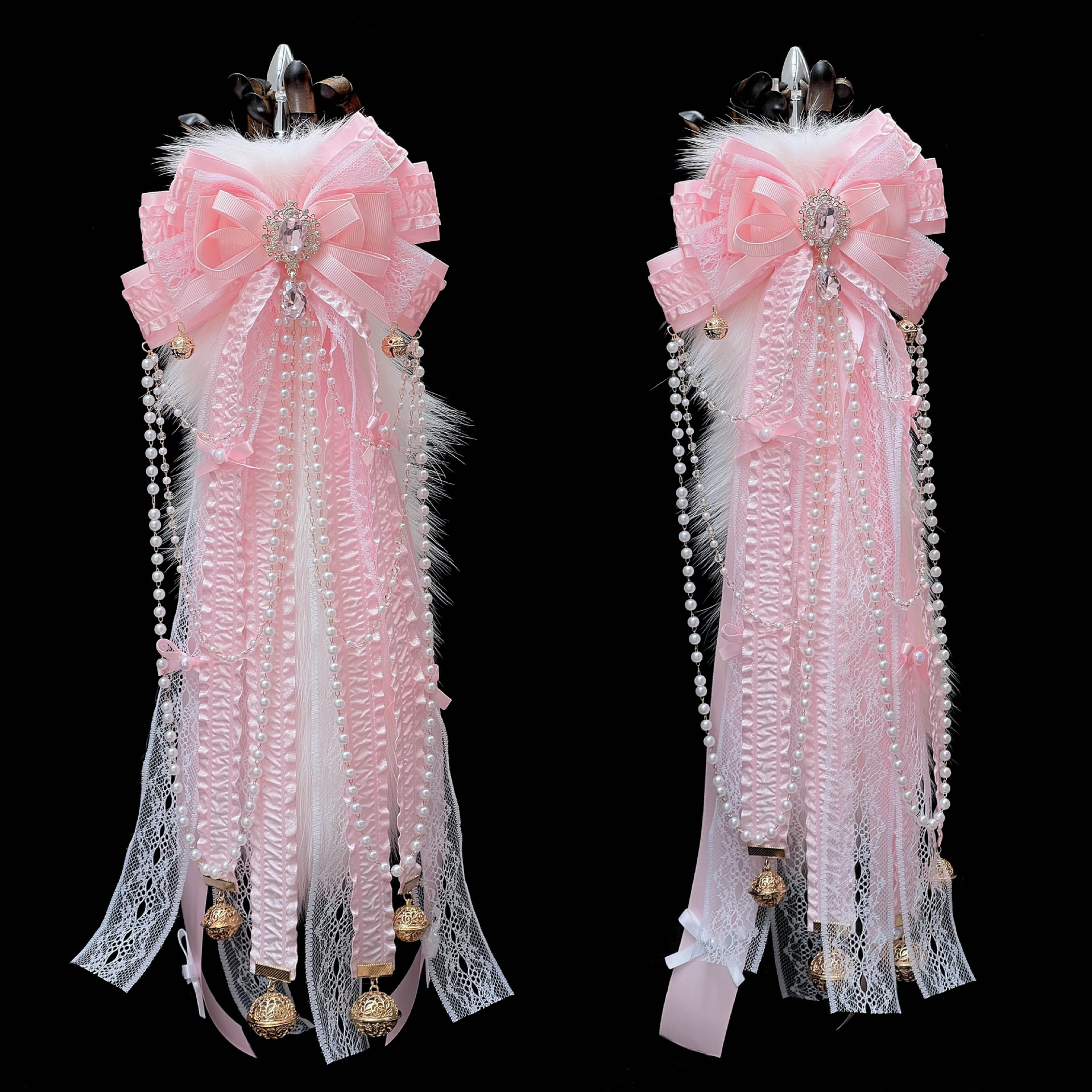 Handmade Light Pink Bow Bell Fox Tail Accessory: Add a Touch of Whimsy to Your Style