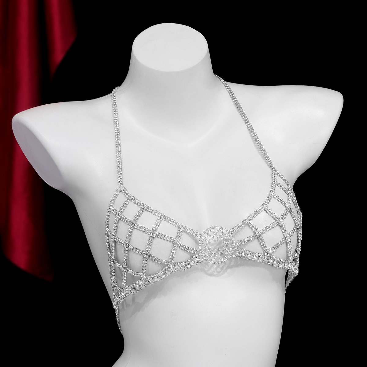 Dazzle with this full diamond geometric chest chain, a European and American-style statement piece. Exude confidence and allure at any nightclub or party with its sexy, exaggerated design. This bikini bra body chain accessory is the ultimate showstopper, adding unparalleled sparkle and sophistication to your look.