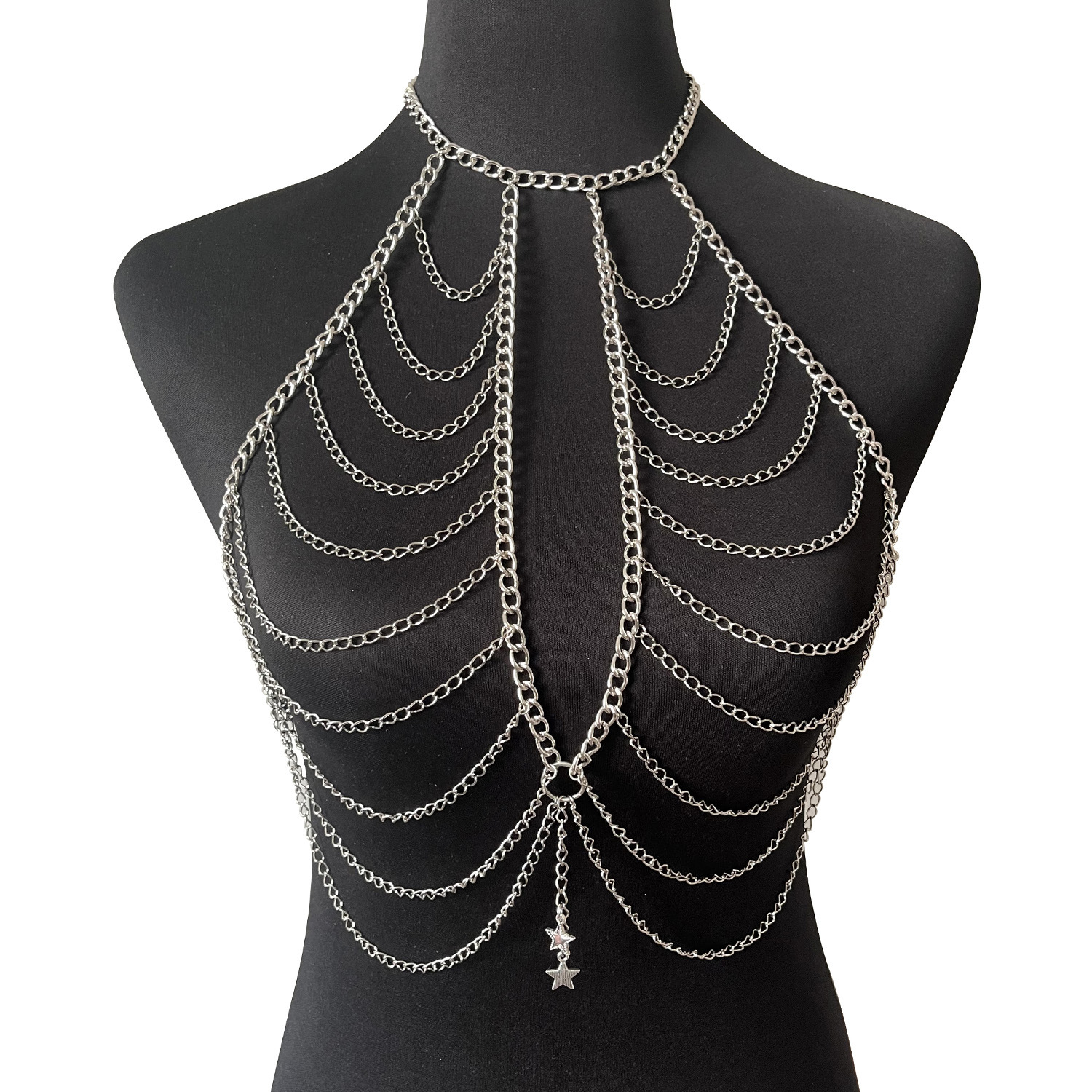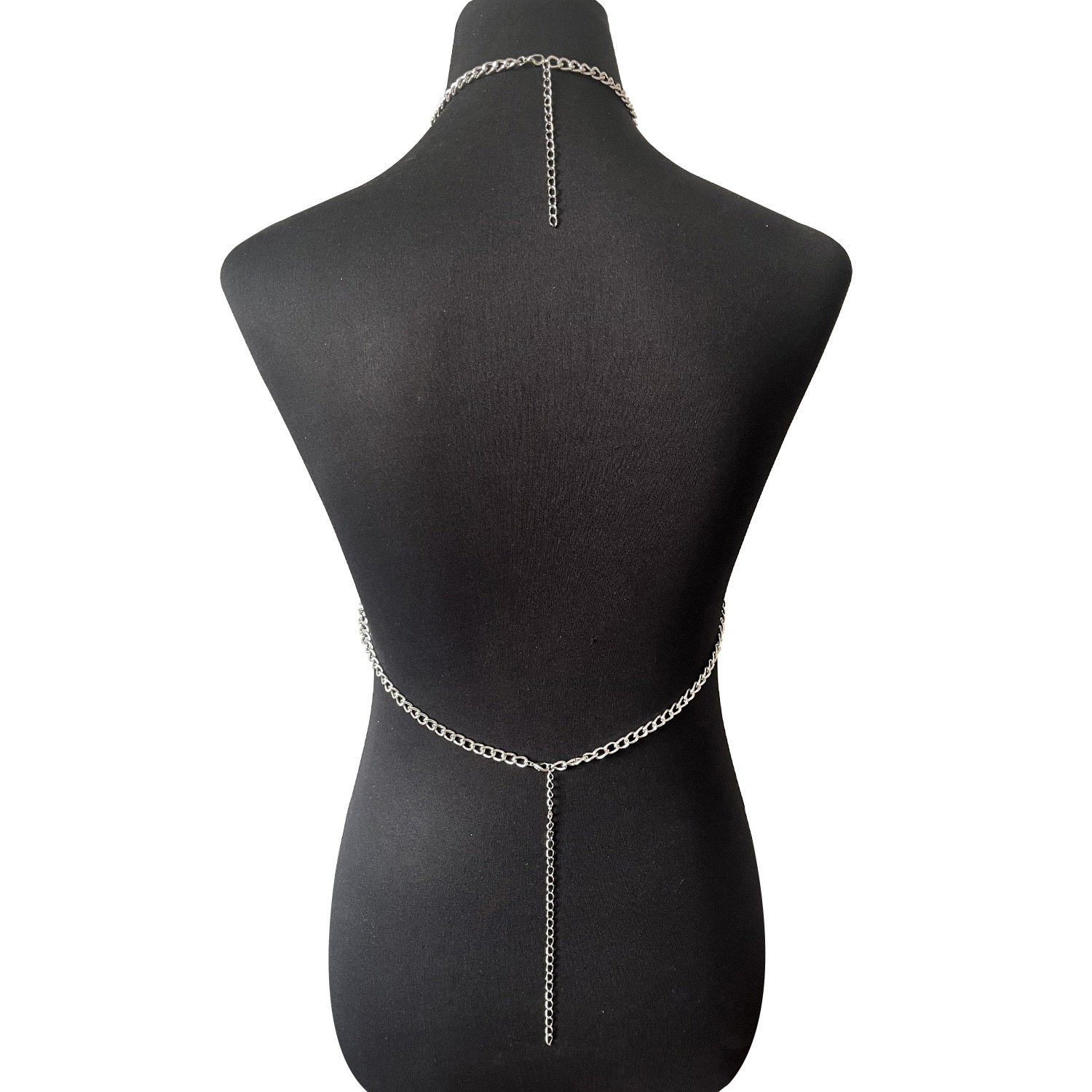 Crafted with meticulous attention to detail, this body chain features a delicate yet durable hollow chain design that drapes sensuously across your body. The intricate links catch the light, creating a mesmerizing shimmer that draws the eye and accentuates your curves. The strategically placed binding elements add a touch of playful restraint, hinting at hidden depths and untamed desires.