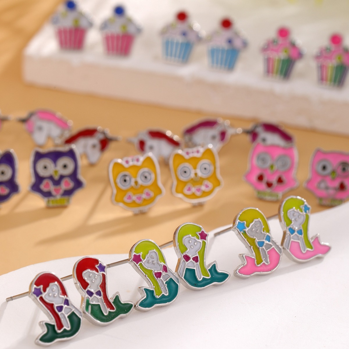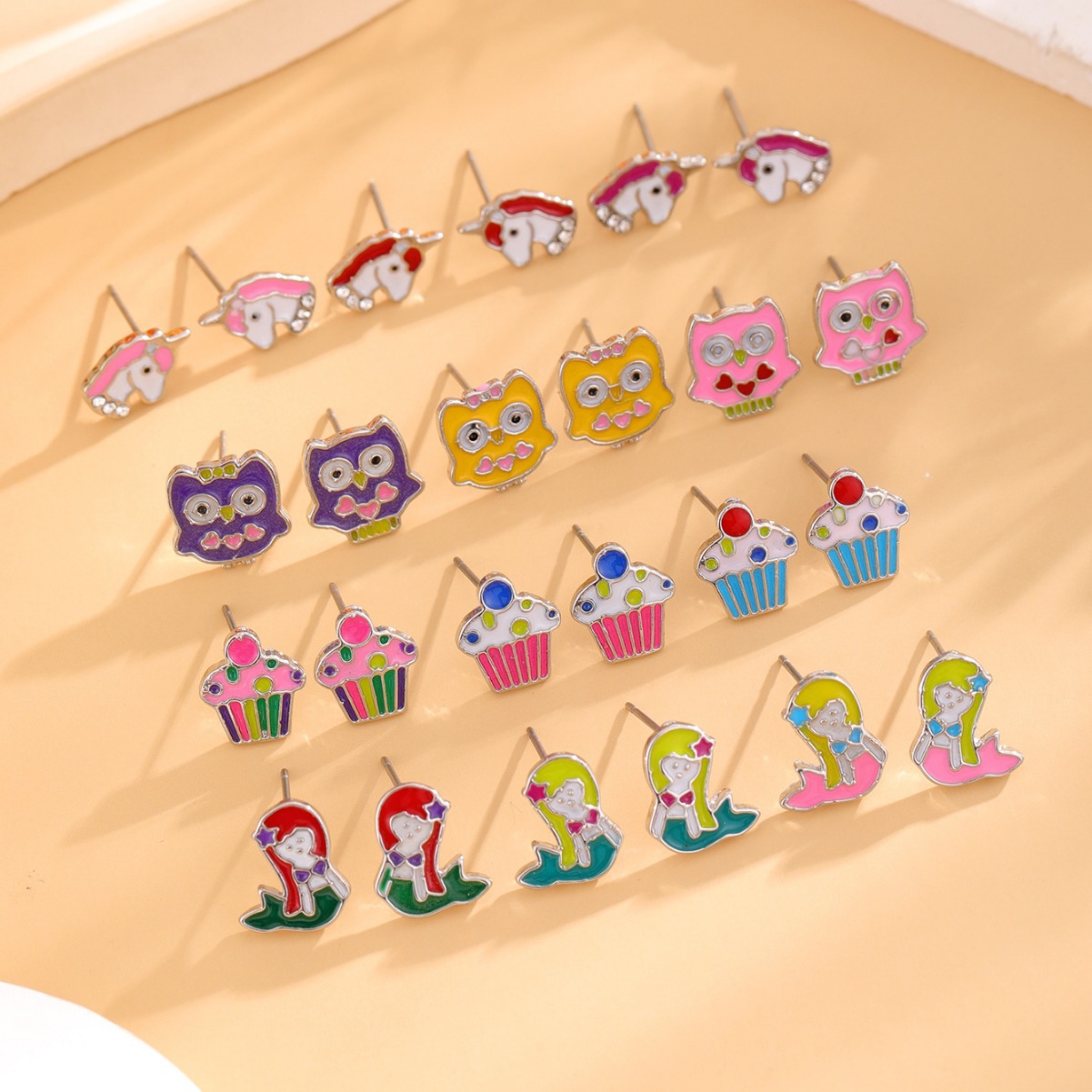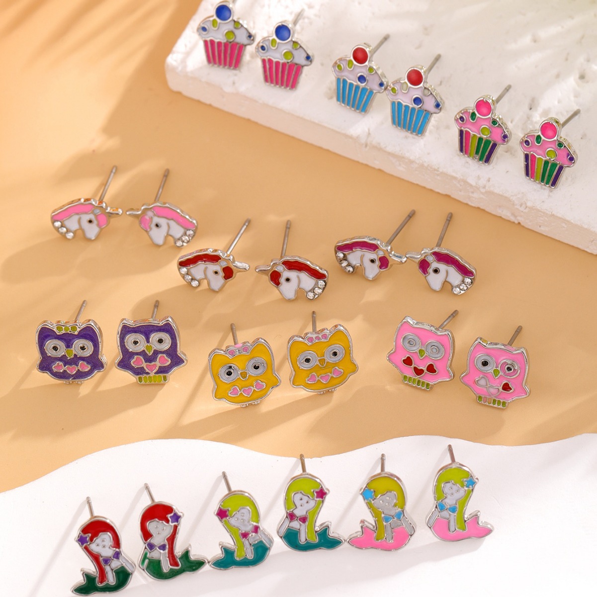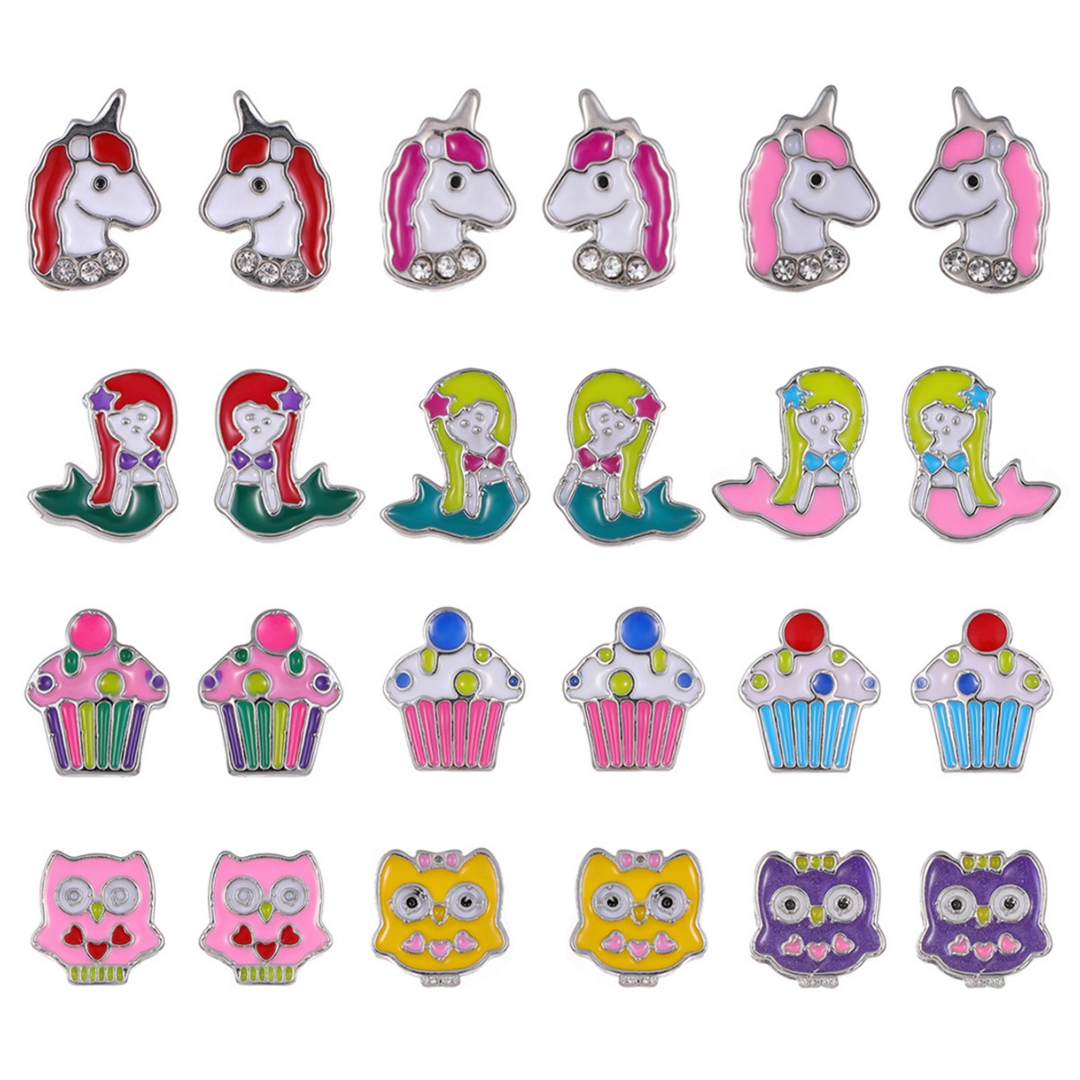 Hot Cross-border New Drop Oil Cartoon Anime Animal Earrings 12 Pair Combo