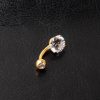 hot-selling European and American fashion simple puncture jewelry electroplated stainless steel zircon umbilical nail double diamond umbilical ring