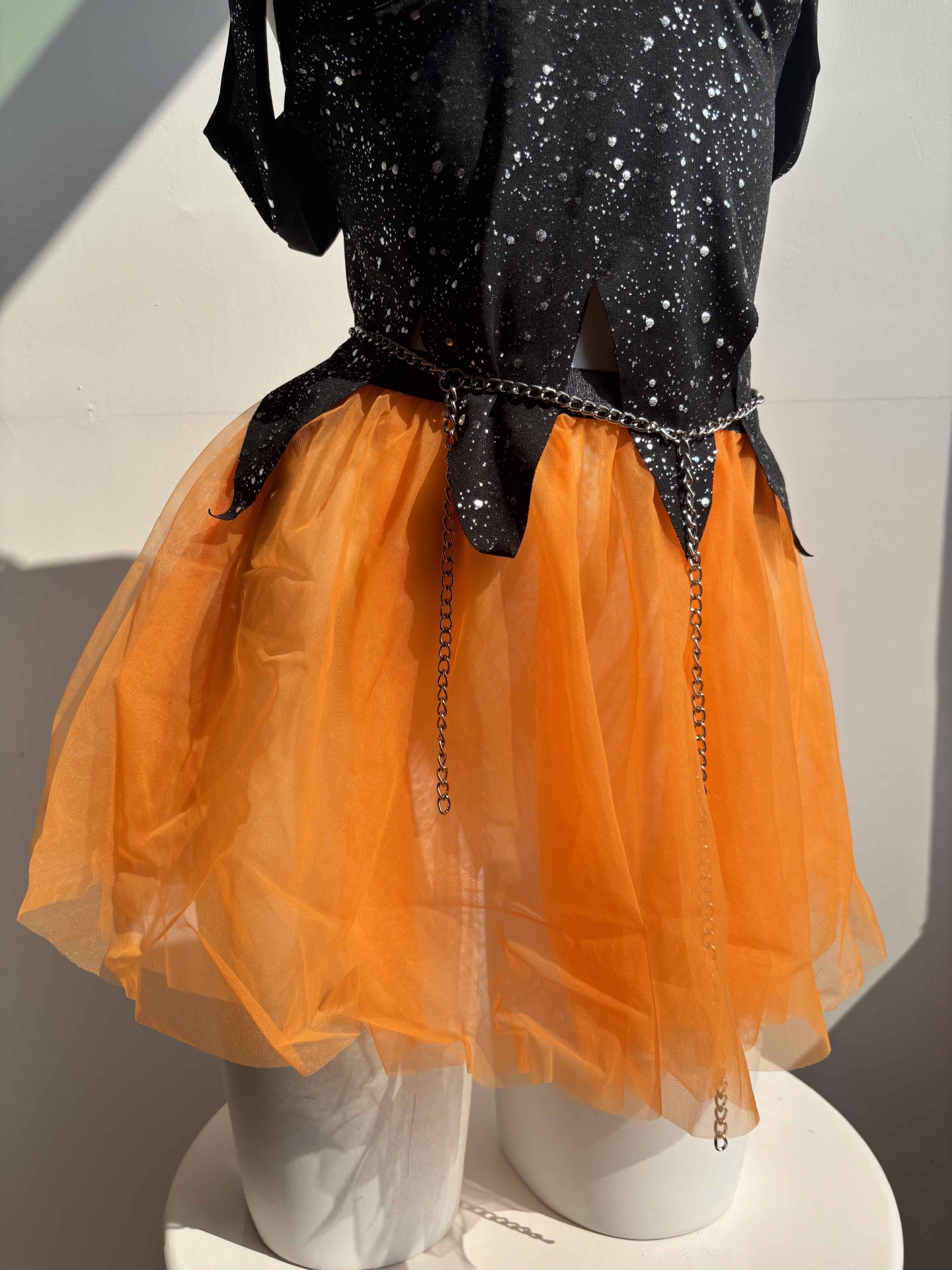 Sexy Witch Halloween Costume Lingerie with Straps, Tulle & Chain Detail