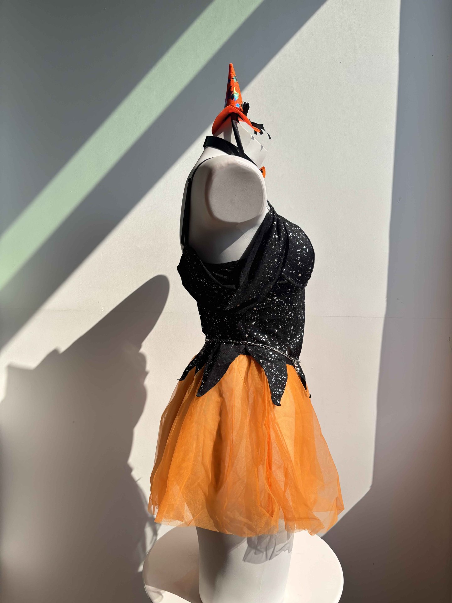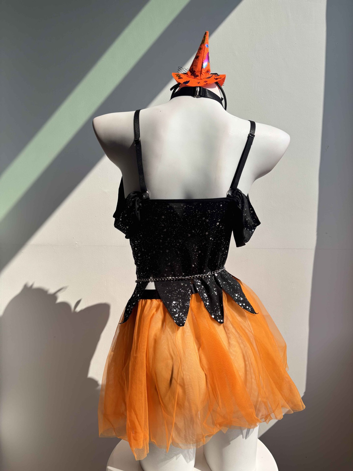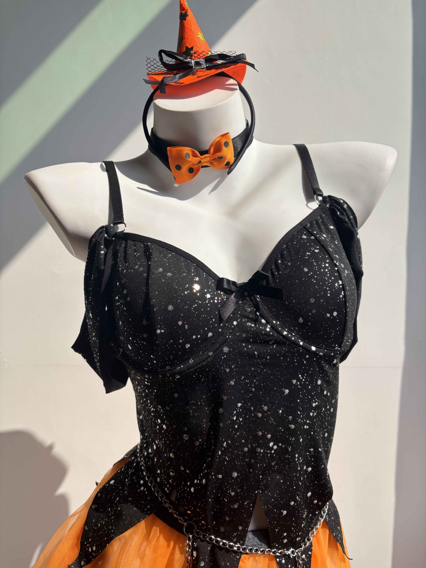 Sexy Witch Halloween Costume Lingerie with Straps, Tulle & Chain Detail