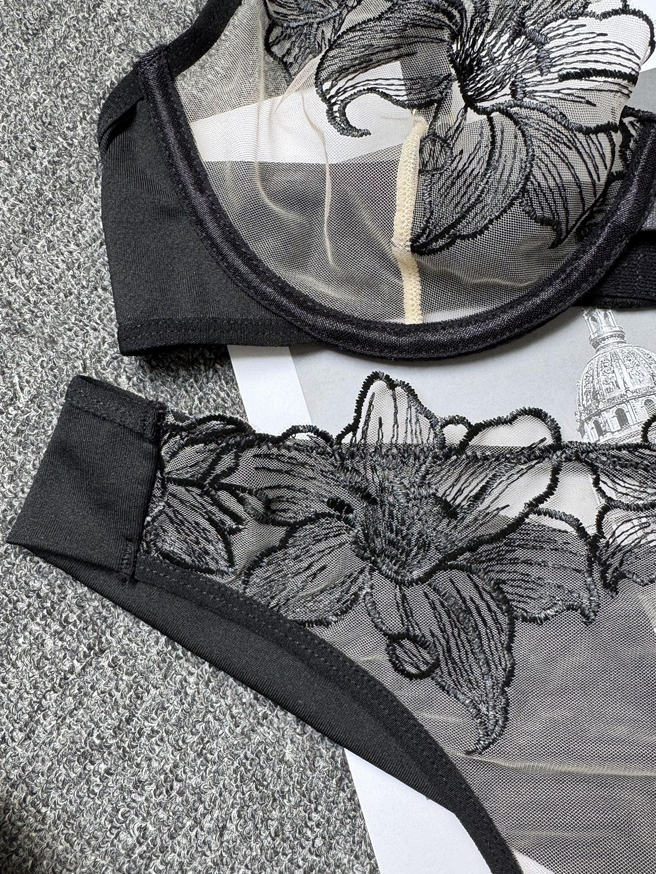 Sexy Floral Embroidered See-Through Lingerie Set for Women