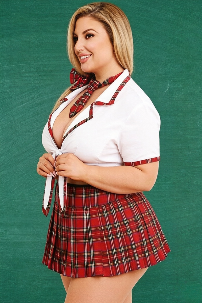 Plus Size Red Plaid Schoolgirl Costume for Halloween Role Play