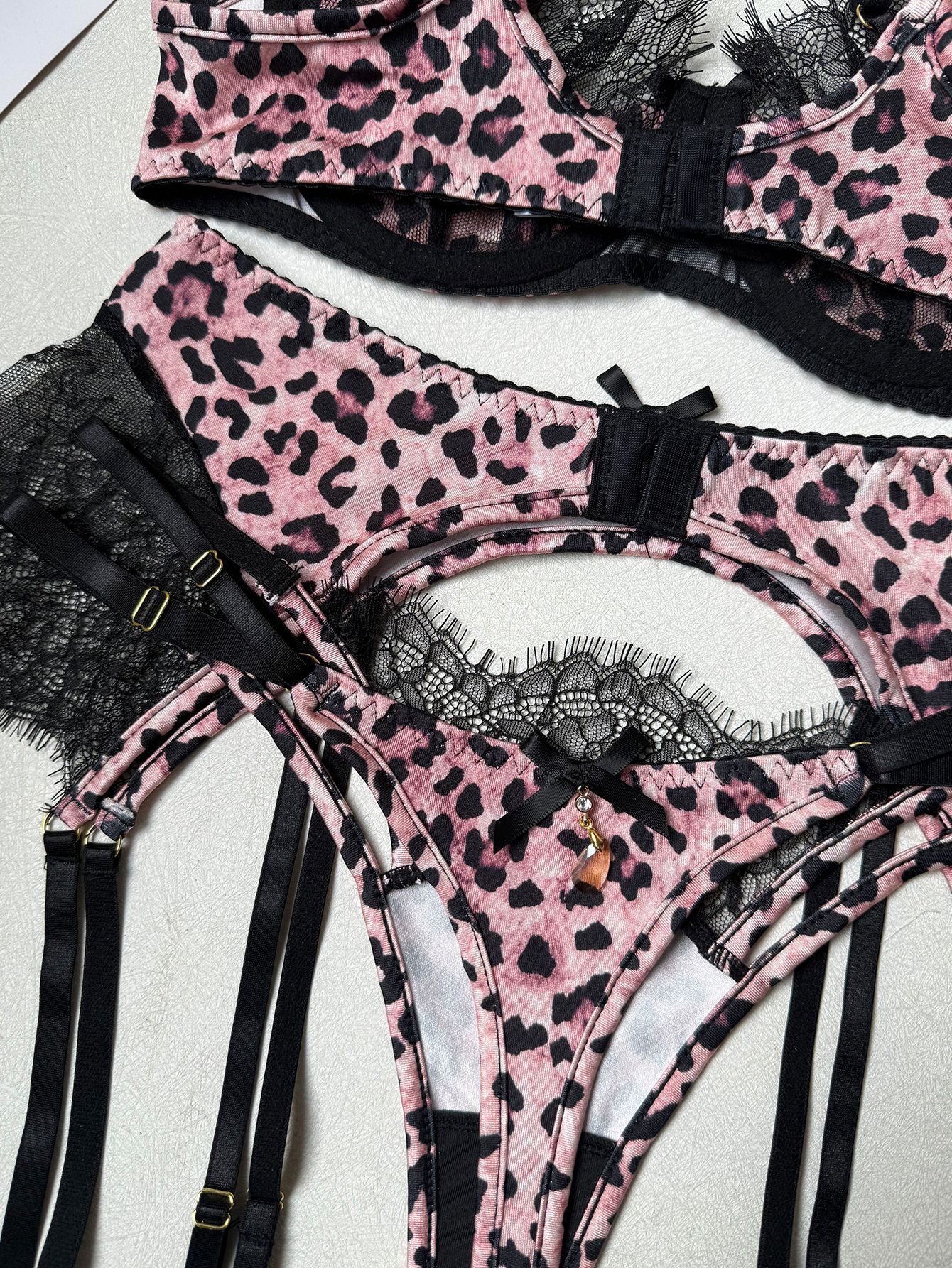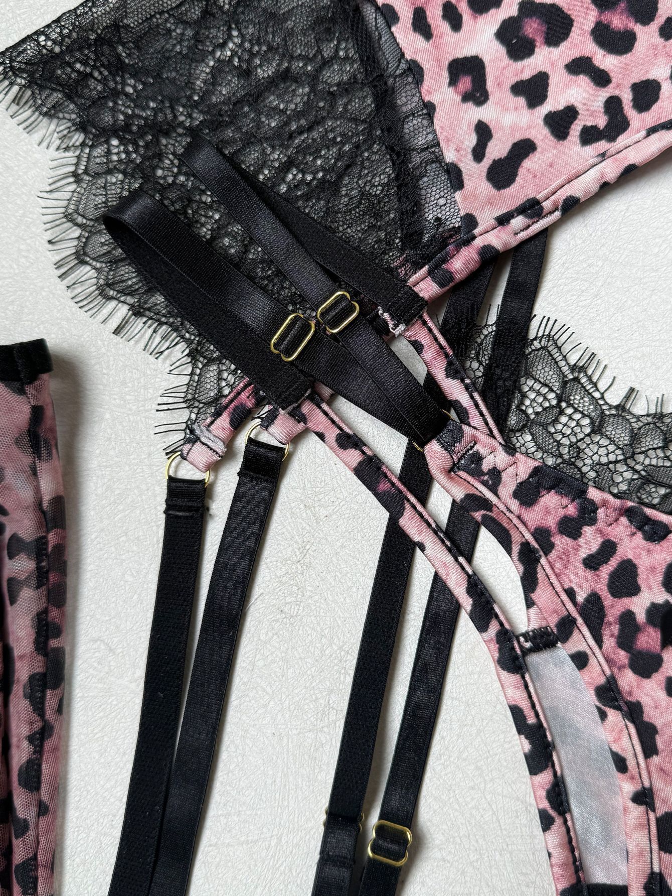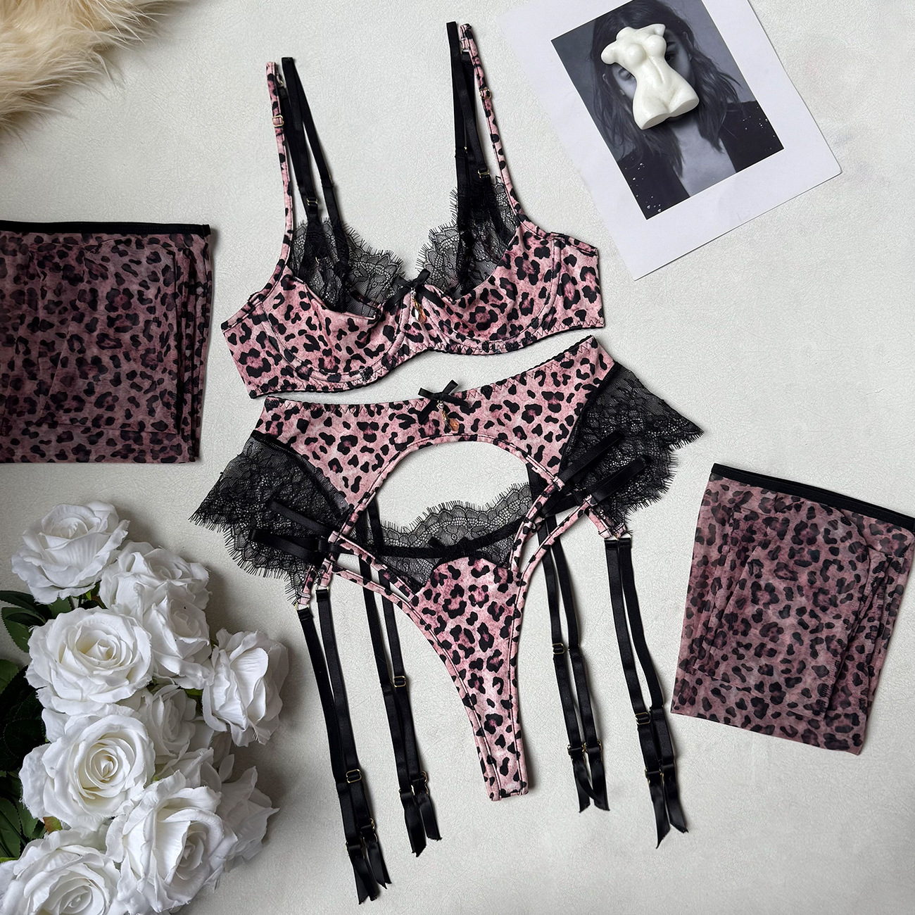 Leopard Lace Garter Set with Stockings – Sexy Lingerie for Women