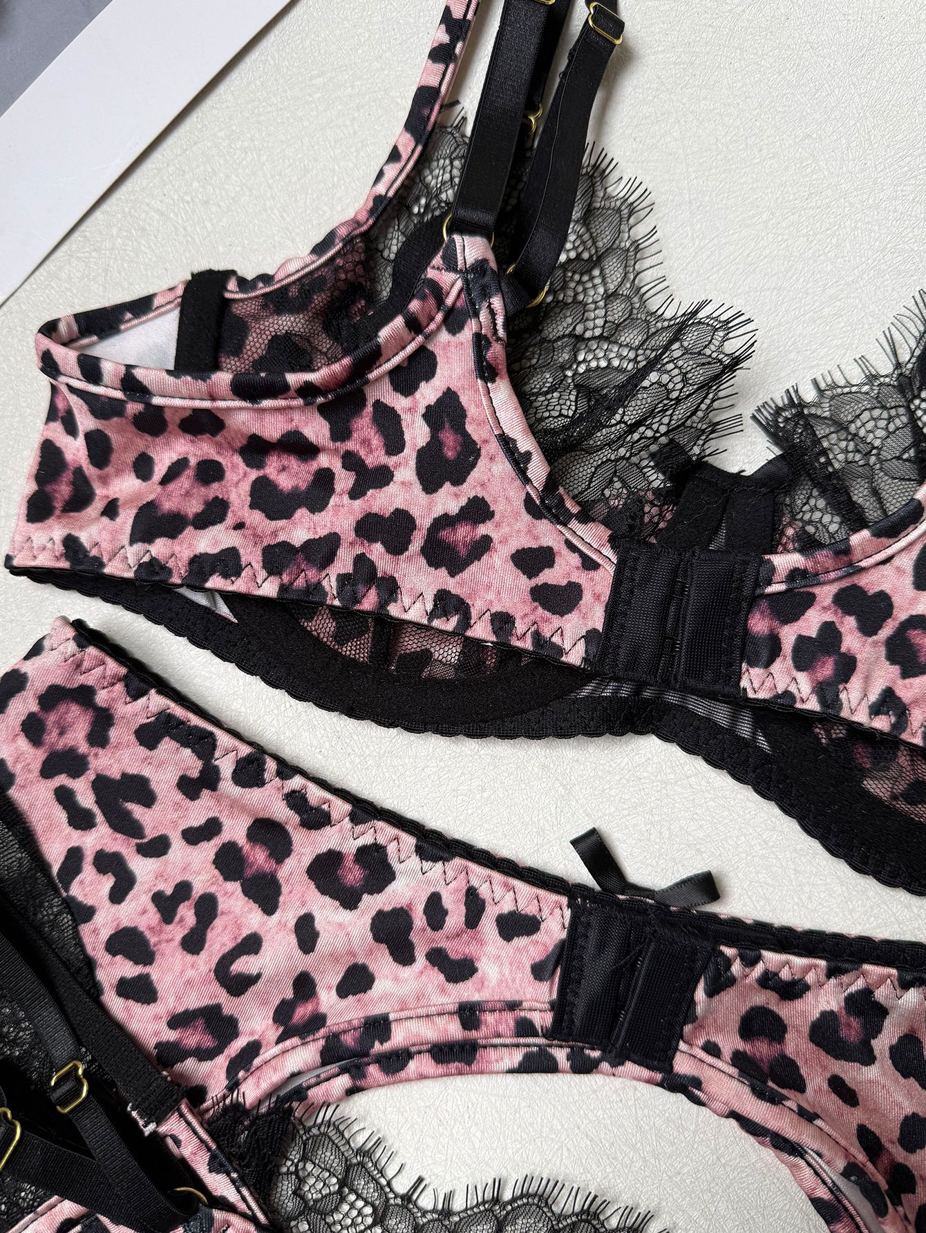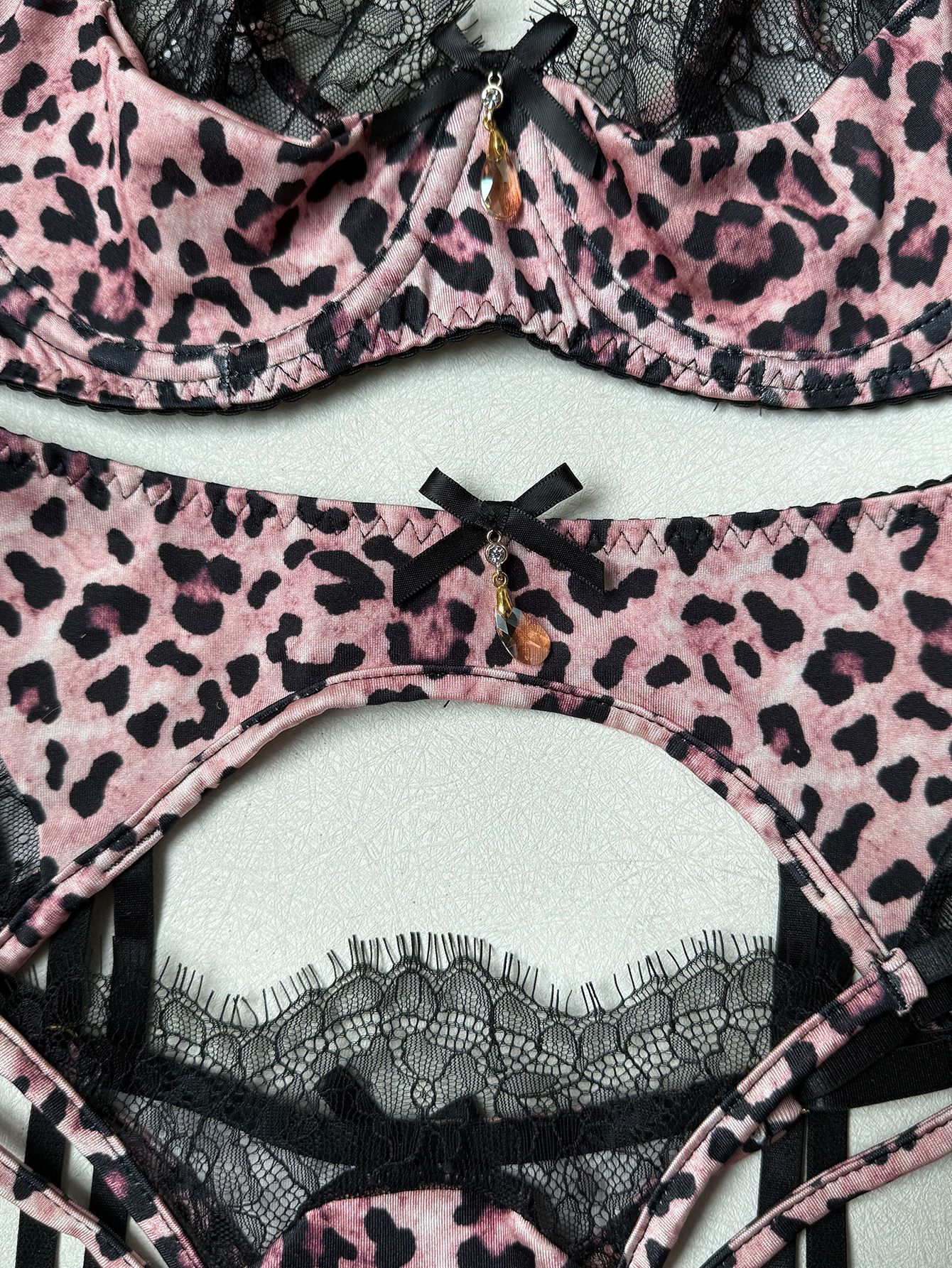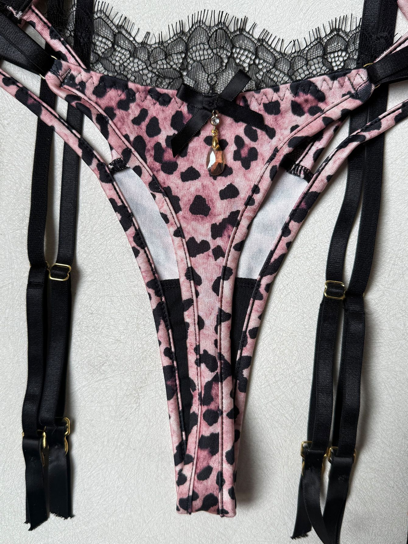 Leopard Lace Garter Set with Stockings – Sexy Lingerie for Women