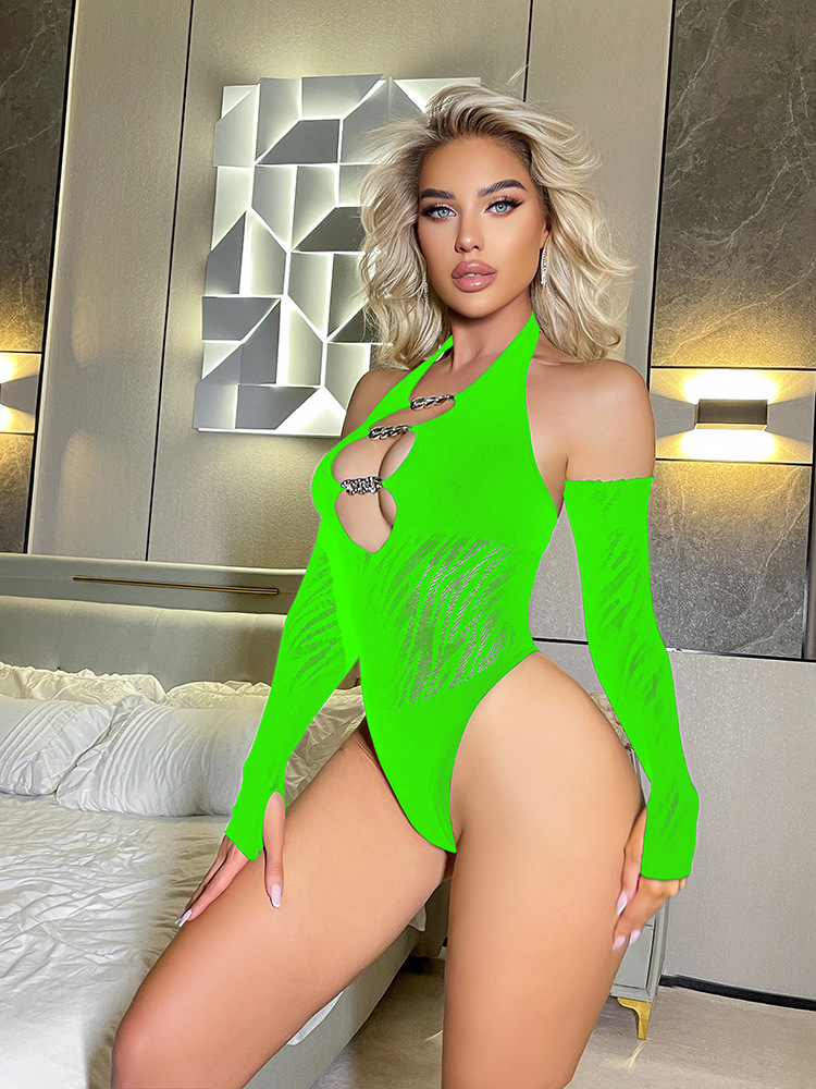 Lingerie Tight Clothes European and American Strap Bikini Backless Perspective Body Clothes Long Sleeve Mesh Hip Skirt K256