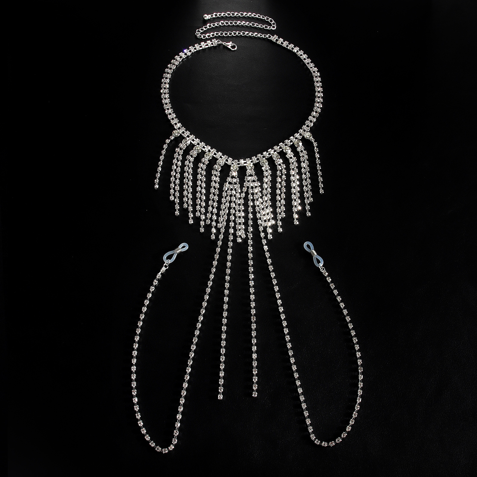 Unleash Your Inner Goddess: The Rhinestone Tassel Chest & Waist Body Chain Set