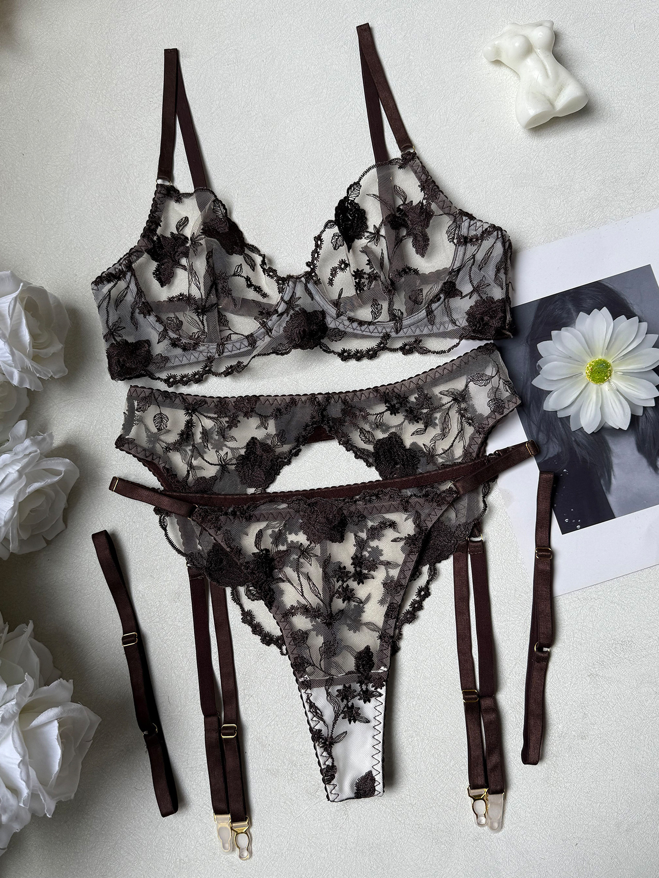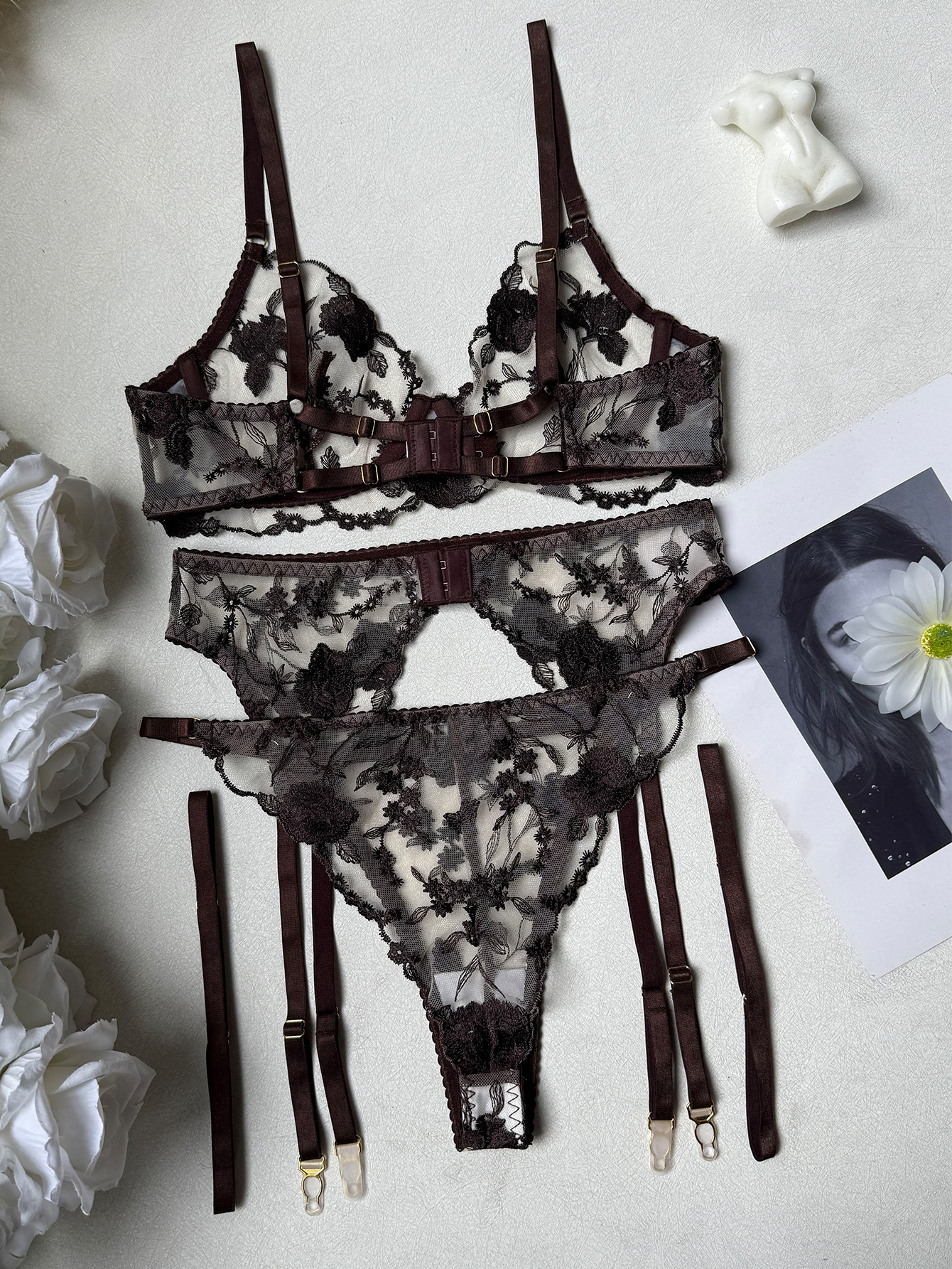 Machine Embroidery Lace Strap Sexy Lingerie Set