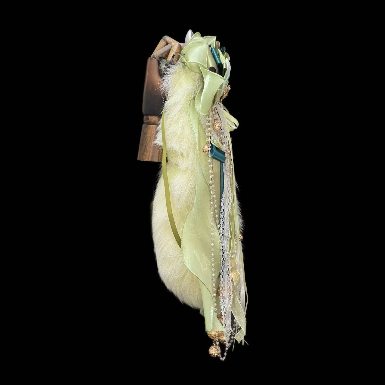 40CM extra thick grass green Frost color Fox real fur tail, butt plug head removable and replaceable.