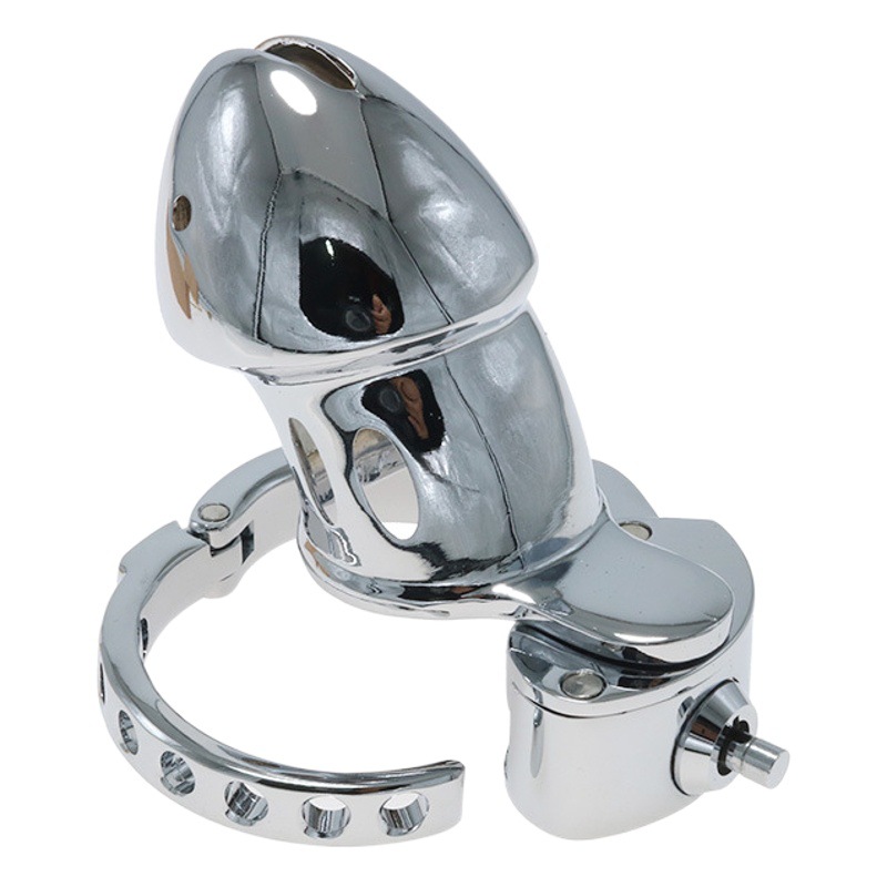 Adjustable Metal Penis Cage Chastity Lock with Integrated Snap Ring for Men