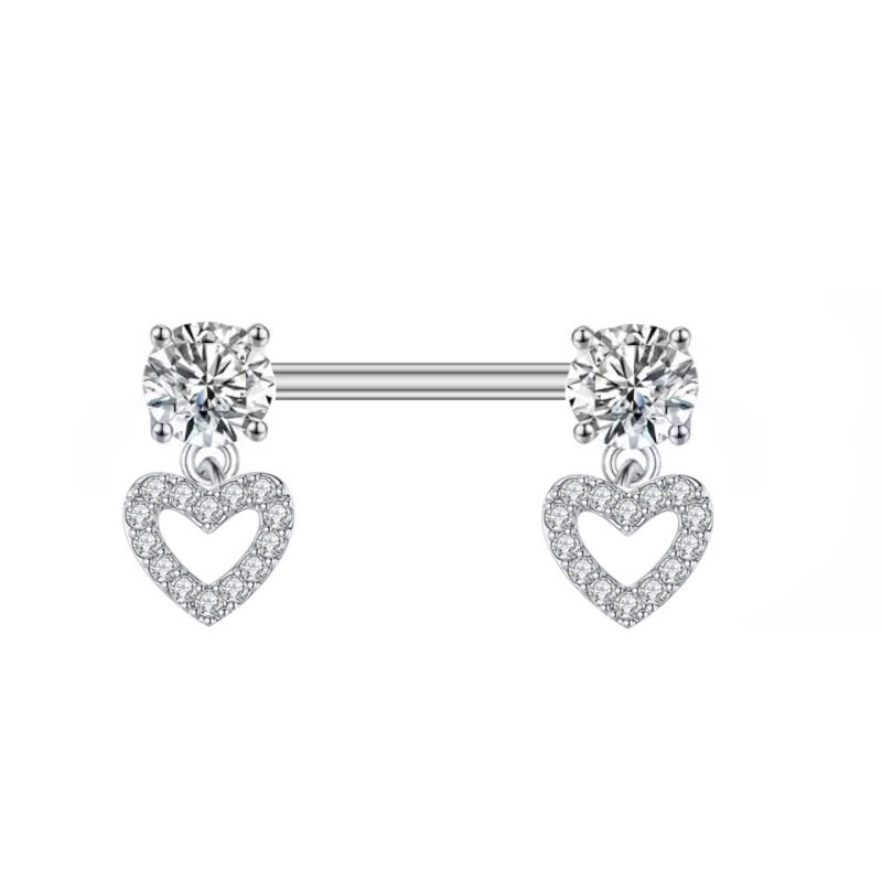 **New European and American Cross-border Straight Rod Zircon Four-claw Peach Heart Inlaid Nail Ring Piercing Jewelry**