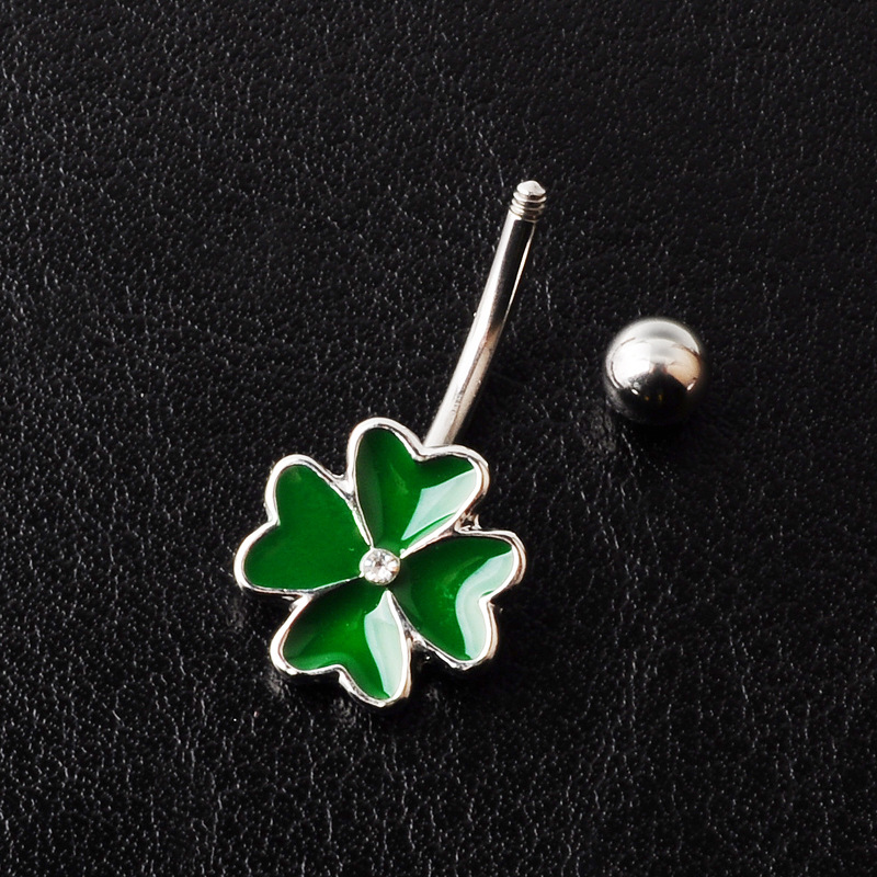 new fashion puncture jewelry oil drop four-leaf clover umbilical nail direct supply