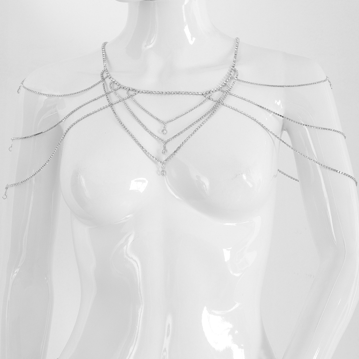 Dazzling rhinestone chest chain: Elevate any outfit with this sexy, multi-layered body chain. Inspired by European and American trends, it transforms dresses and shawls into statement pieces, offering unparalleled sparkle and confidence.