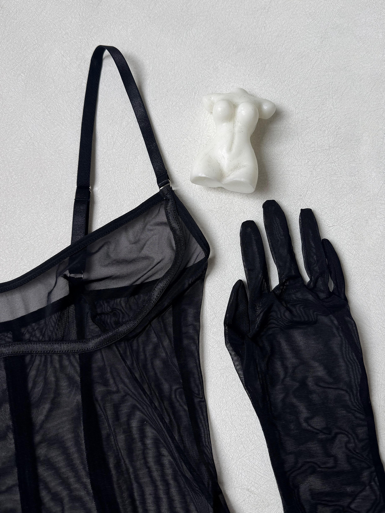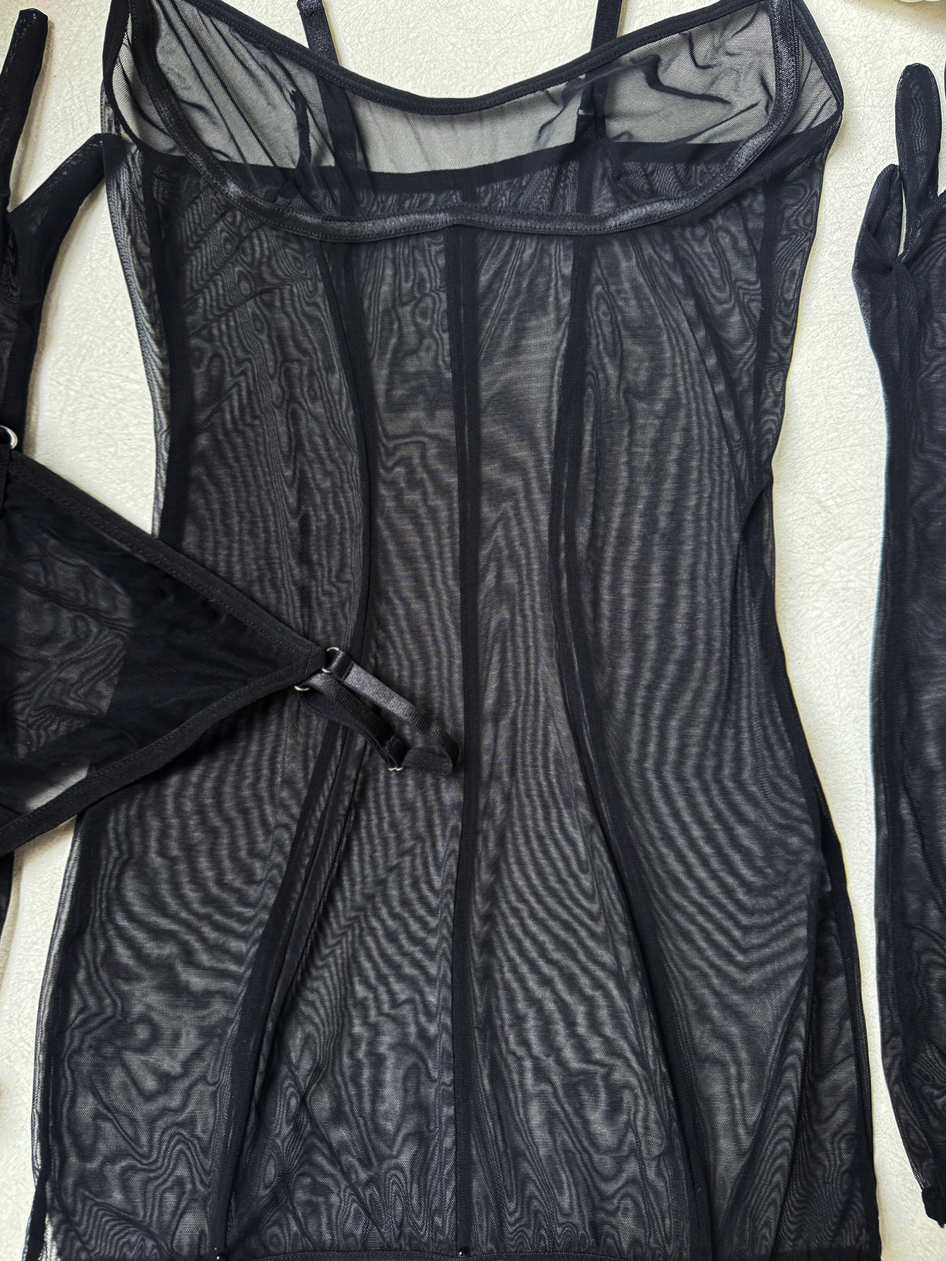 Sexy Mesh Belt Outer Bra Dress Set for Women