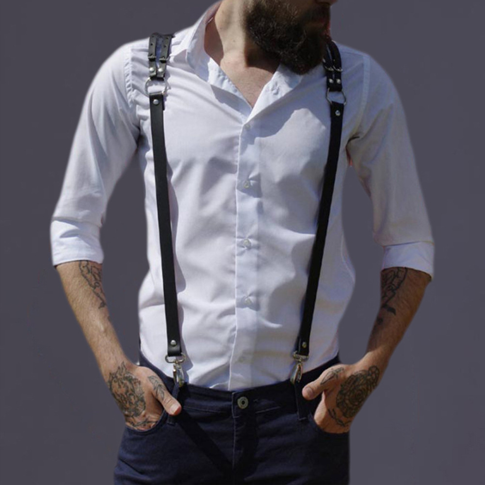 Trendy men’s leather shoulder belt offering a personalized, casual, and all-matching style. Elevates any outfit with a unique chest strap design, providing a modern alternative to traditional suspenders.