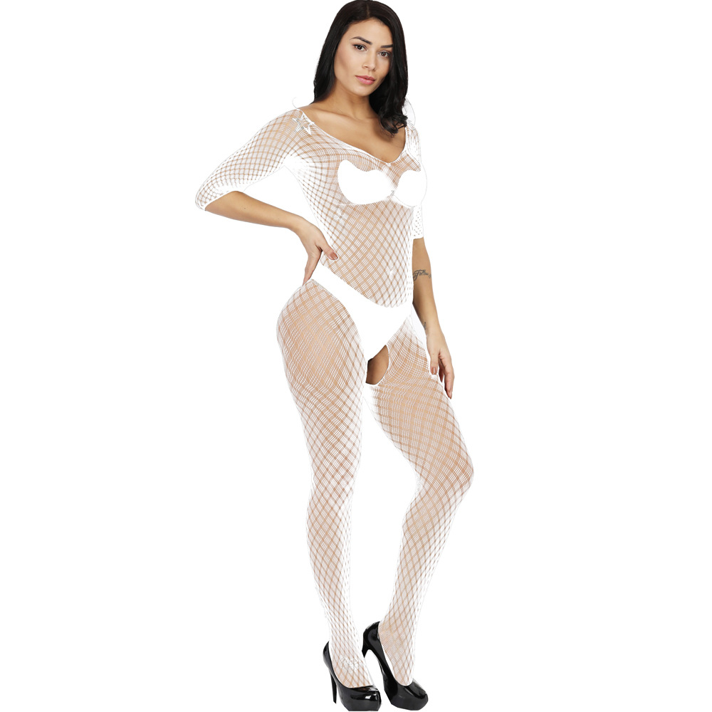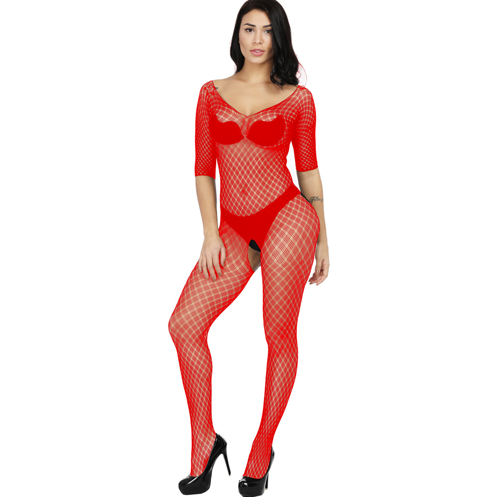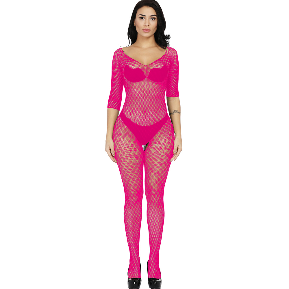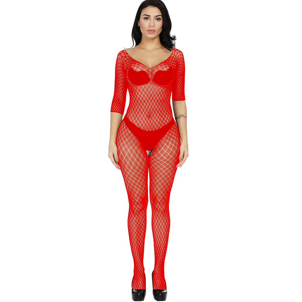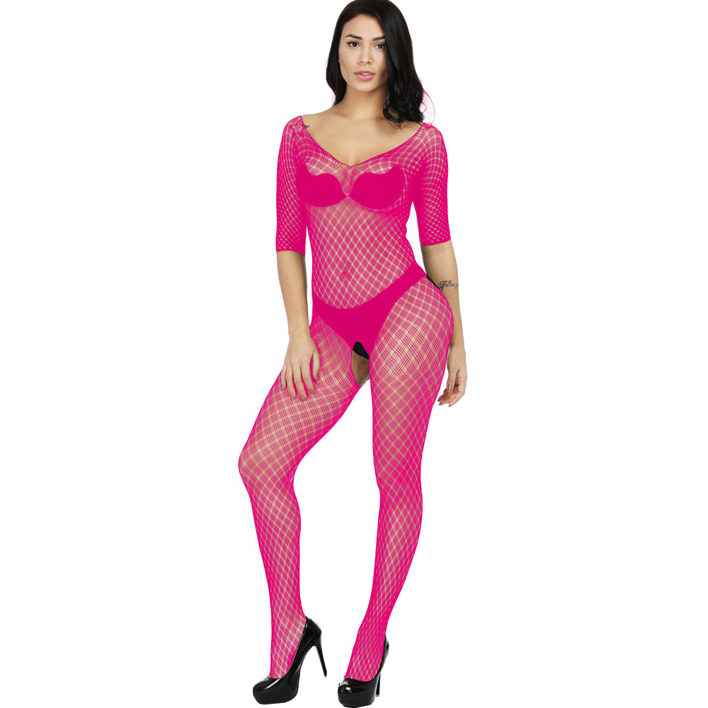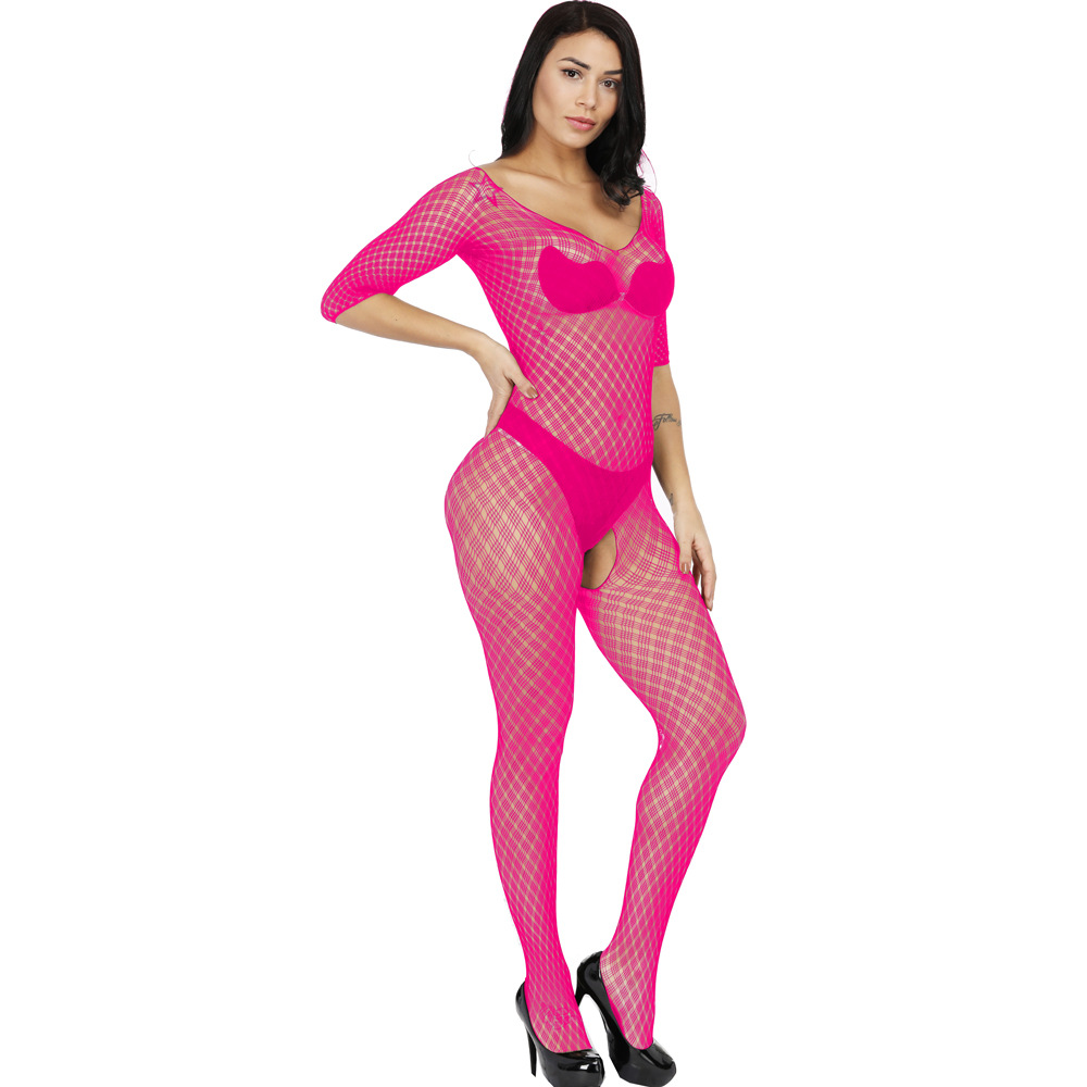 This sexy one-piece lingerie features a Jacquard mesh design with a small plaid pattern, long sleeves, and a European/American-inspired cut. It offers a seductive and stylish look, combining comfort and allure for a confident and captivating experience.