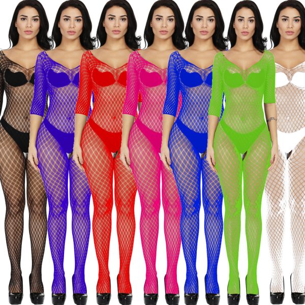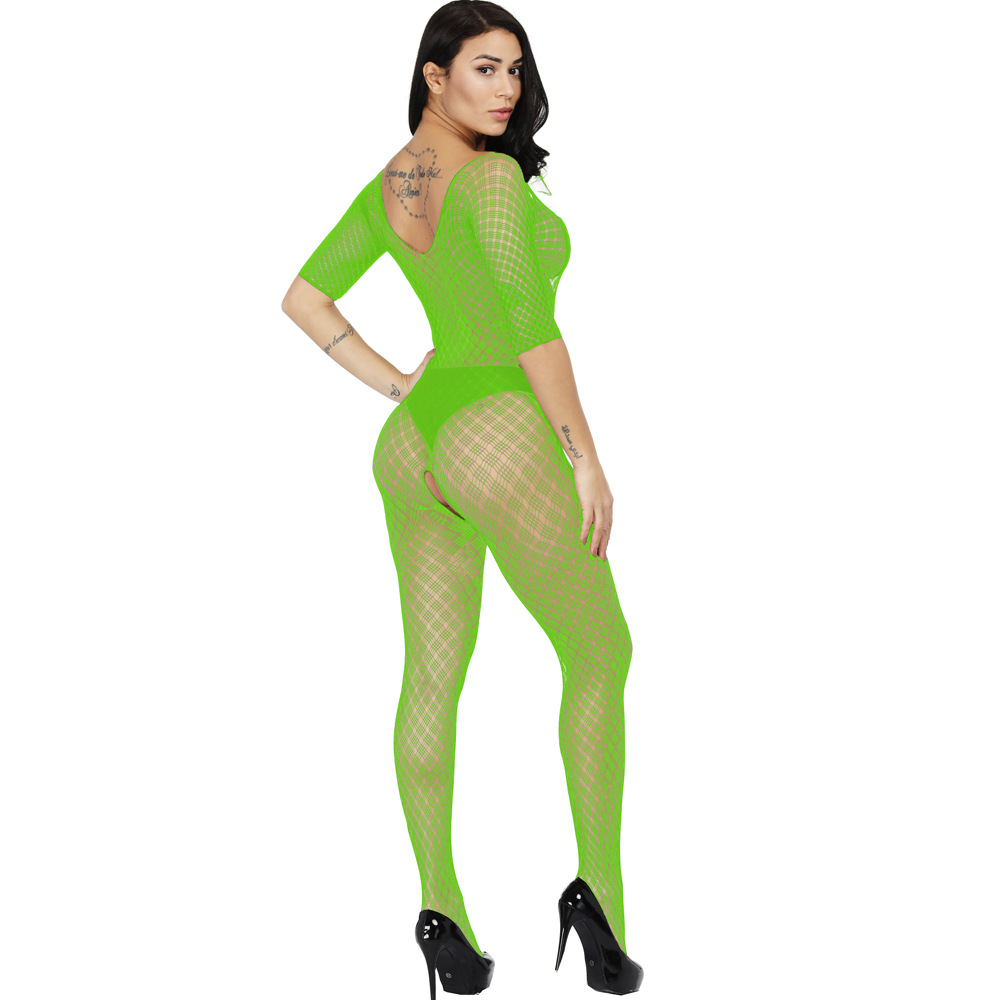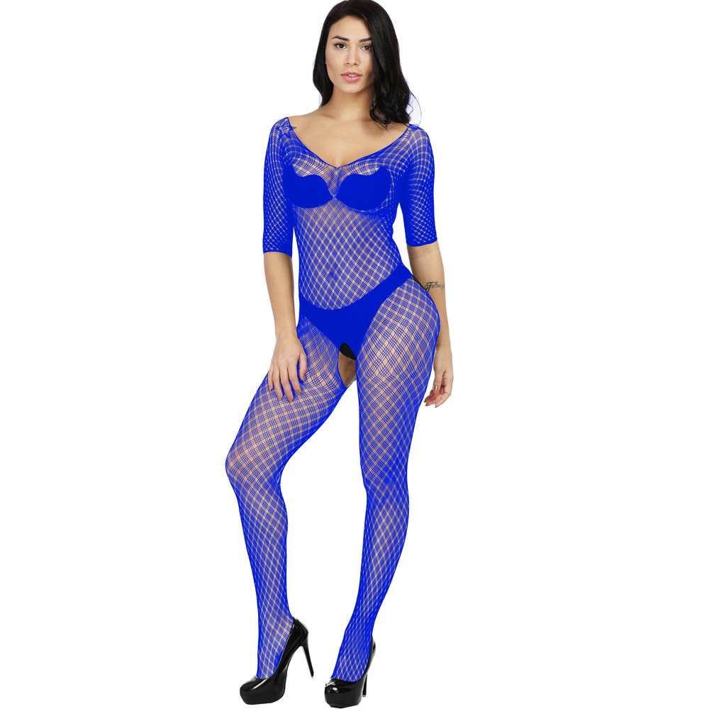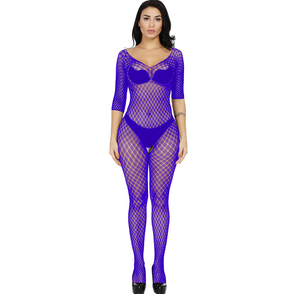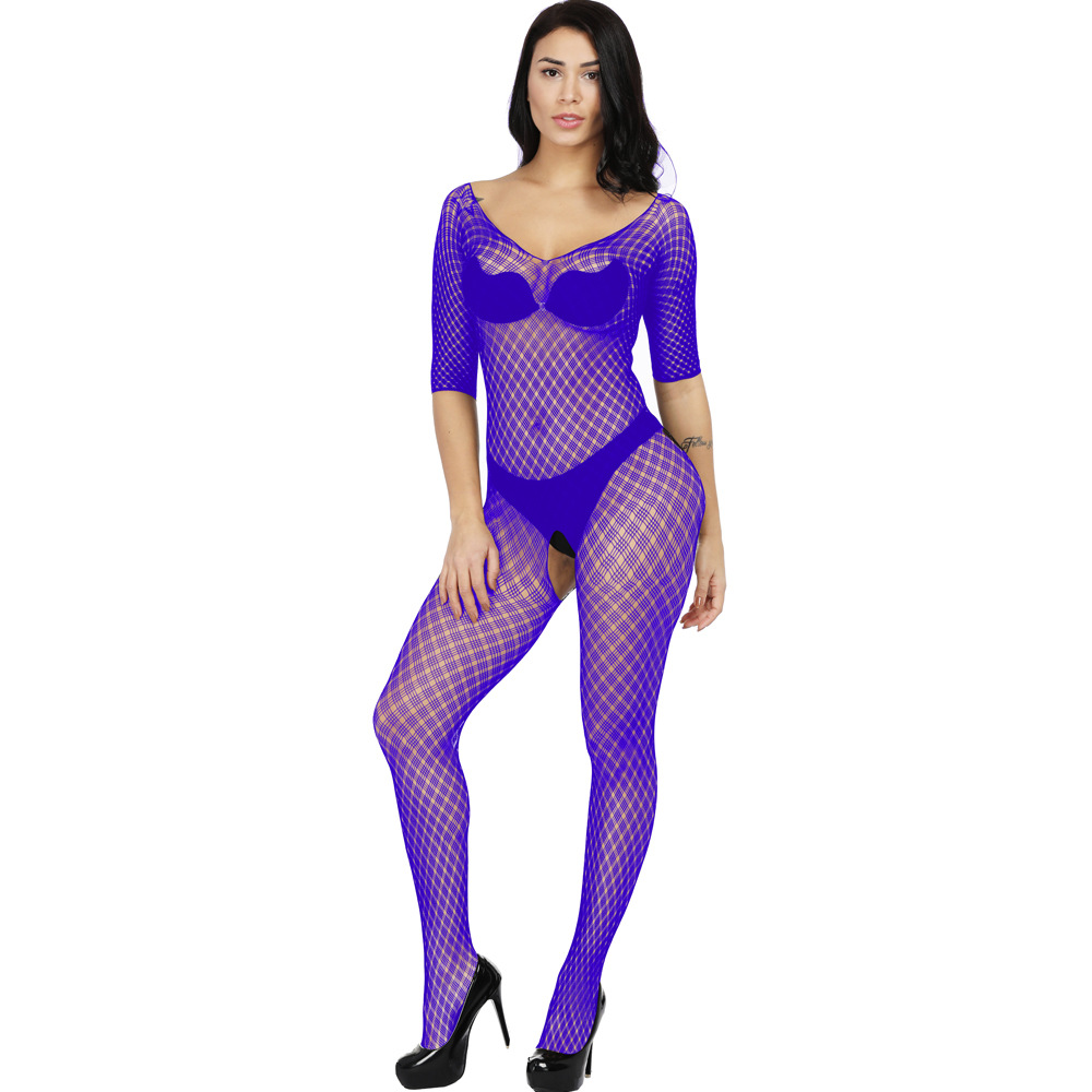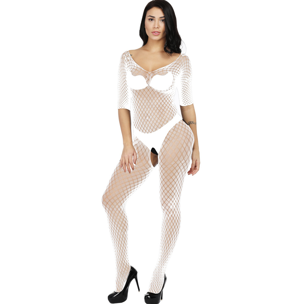 This sexy one-piece lingerie features a Jacquard mesh design with a small plaid pattern, long sleeves, and a European/American-inspired cut. It offers a seductive and stylish look, combining comfort and allure for a confident and captivating experience.