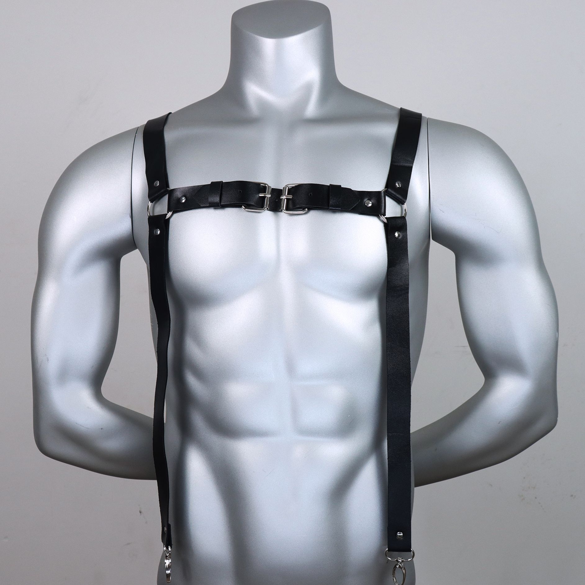 Dare to Bare: This body chain features a strategically hollowed design that accentuates your physique, creating a tantalizing glimpse of skin and muscle. The intricate chain work drapes across your chest and torso, highlighting your best assets and leaving a lasting impression on your audience.