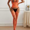 Orange Lace-Up Open Crotch Lingerie Bodysuit
