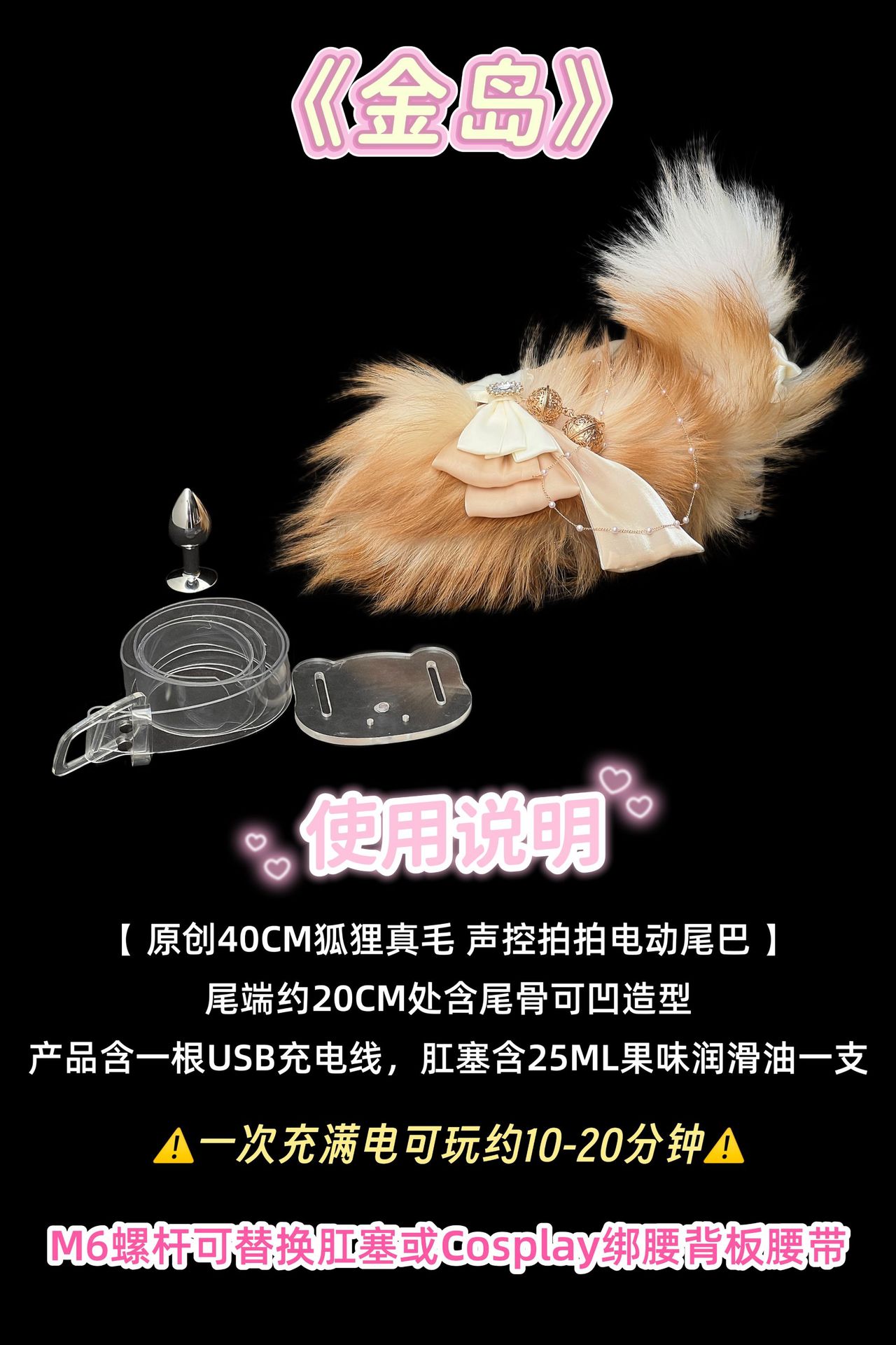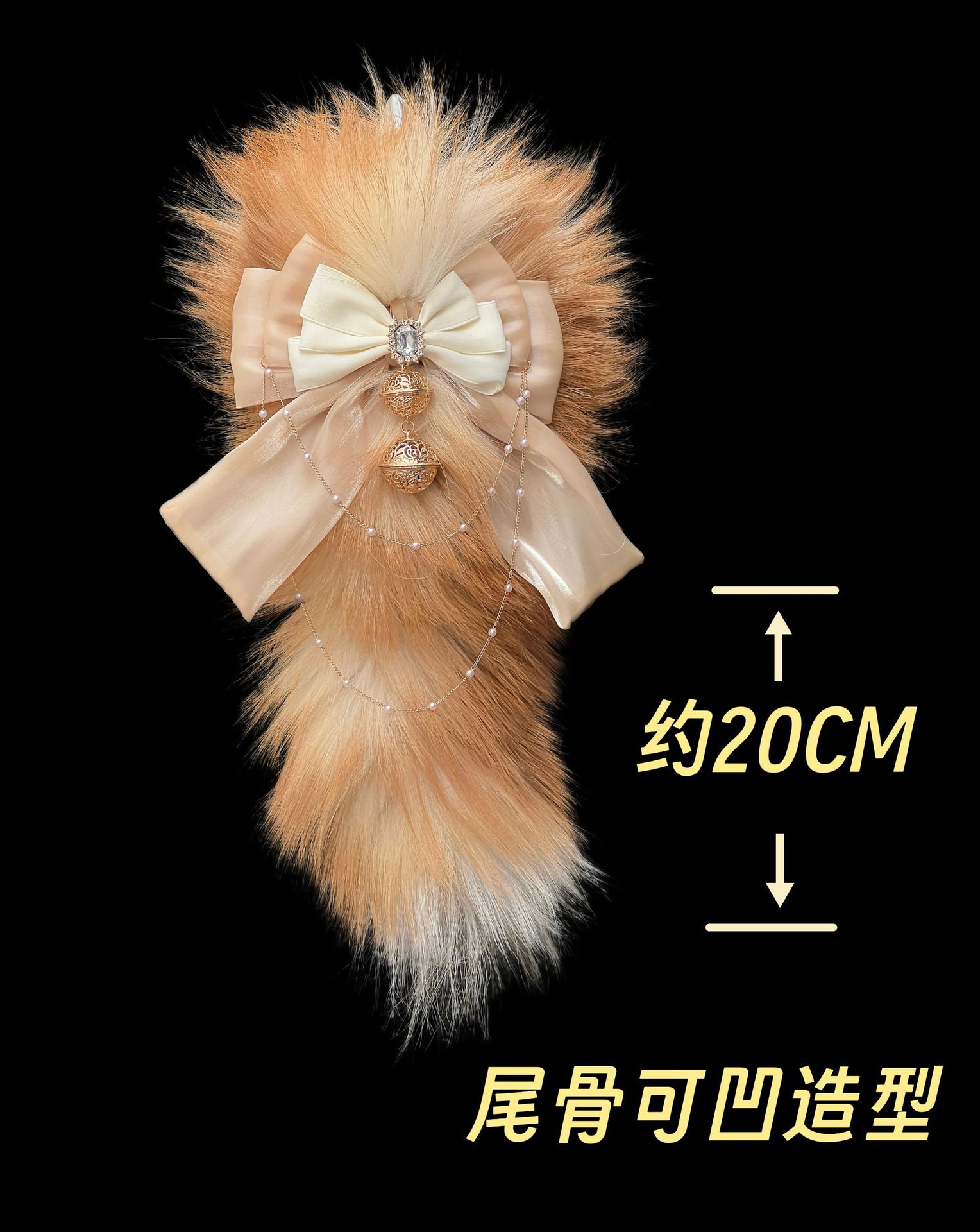 Golden Island Fox Fur Tail Butt Plug with Palace Bell & Racket – 40cm