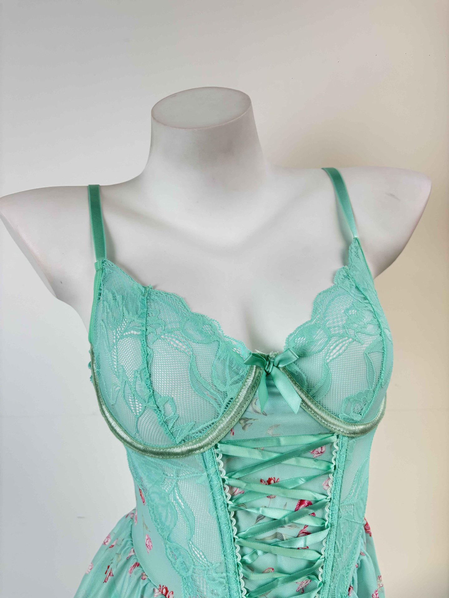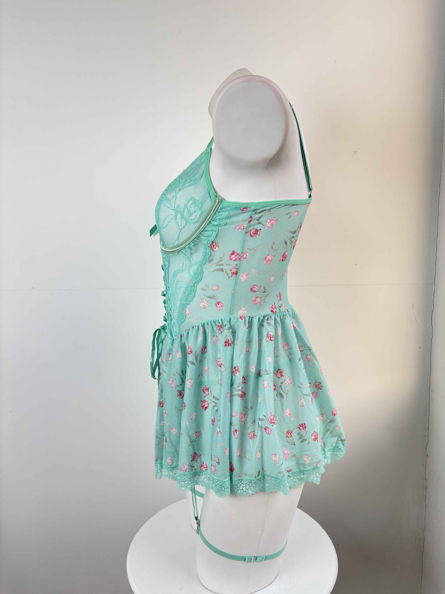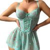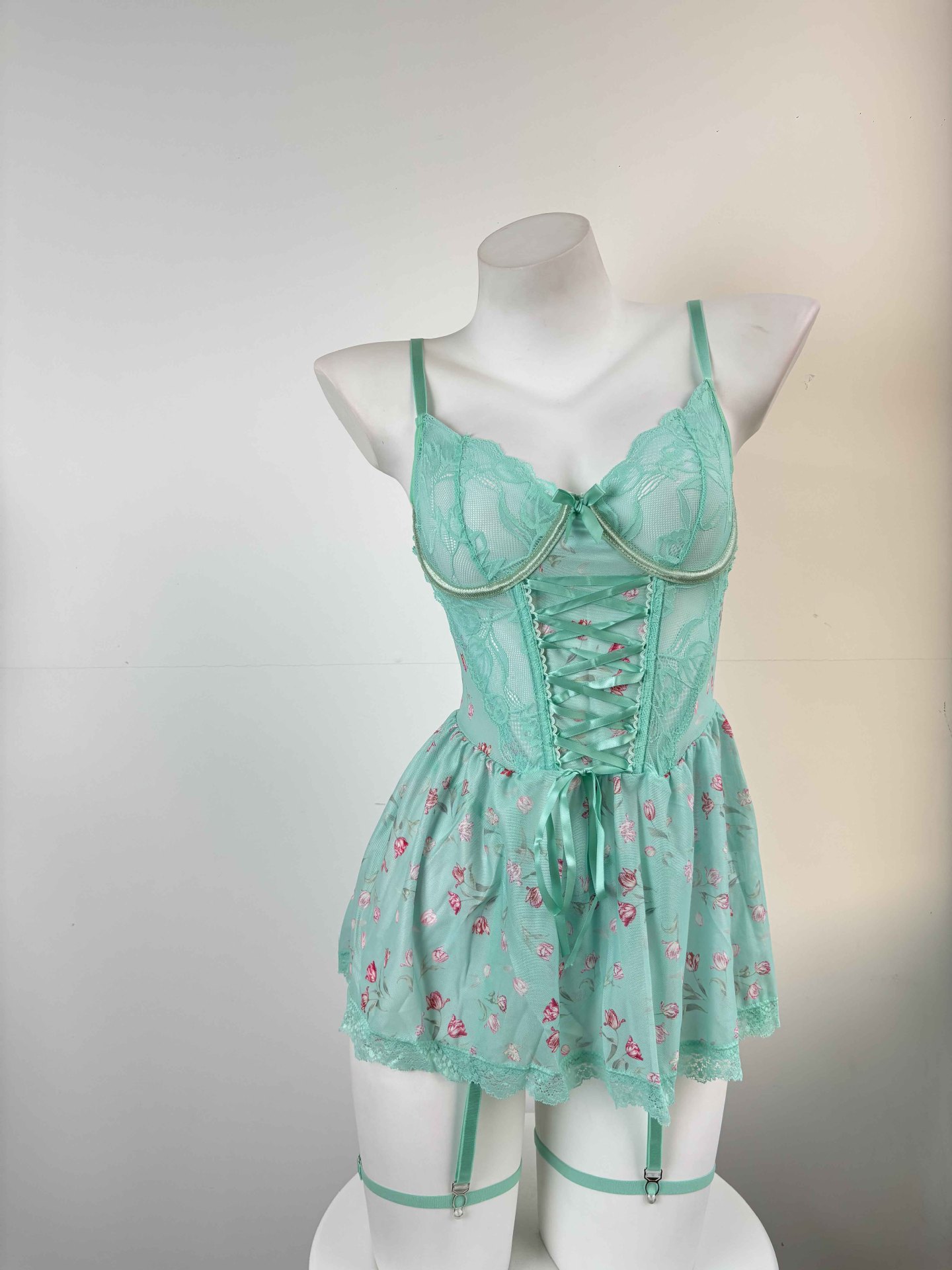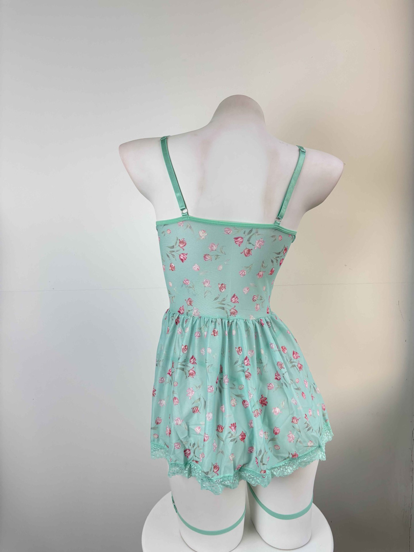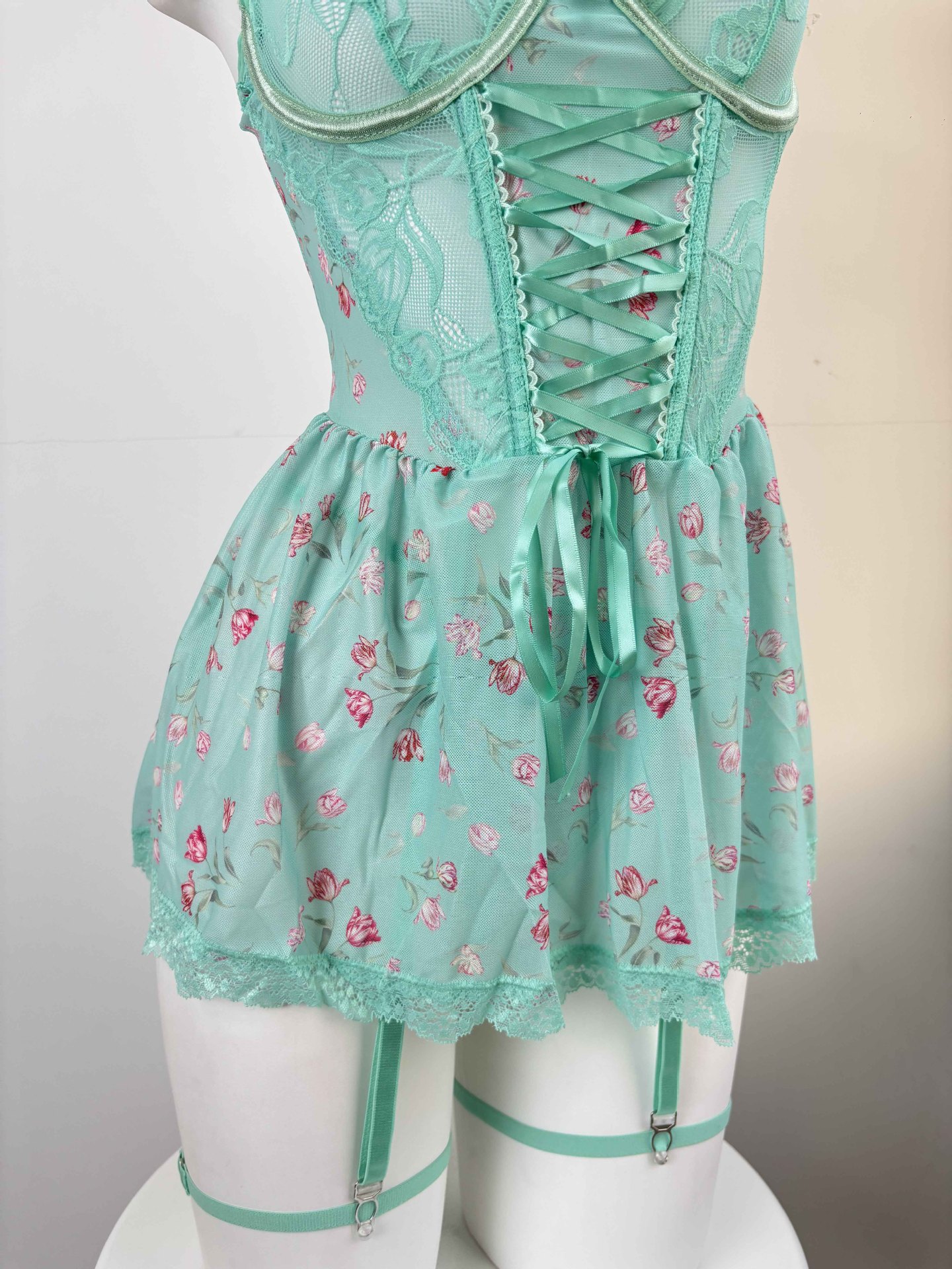 Sexy Lace Mesh Backless Suspender Mini Skirt Lingerie Set