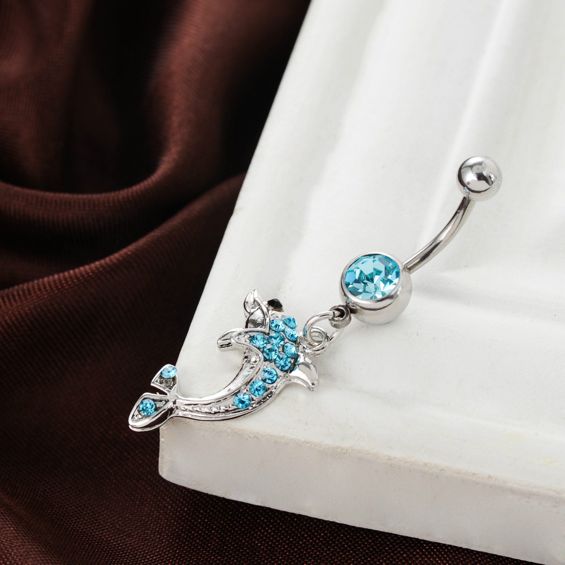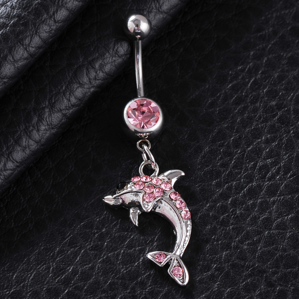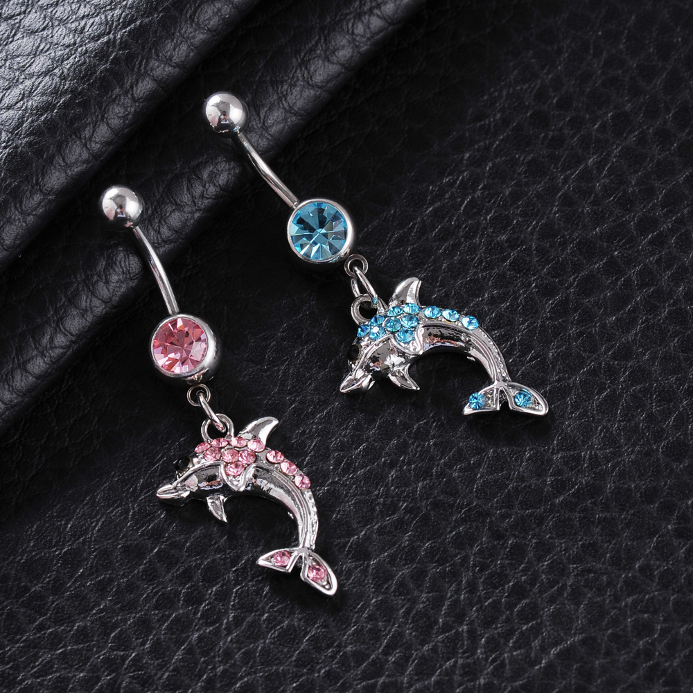 Puncture Jewelry European and American Puncture Jewelry Animal Umbilical Nail Alloy Diamond Dolphin Pendant Umbilical Nail