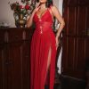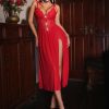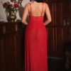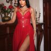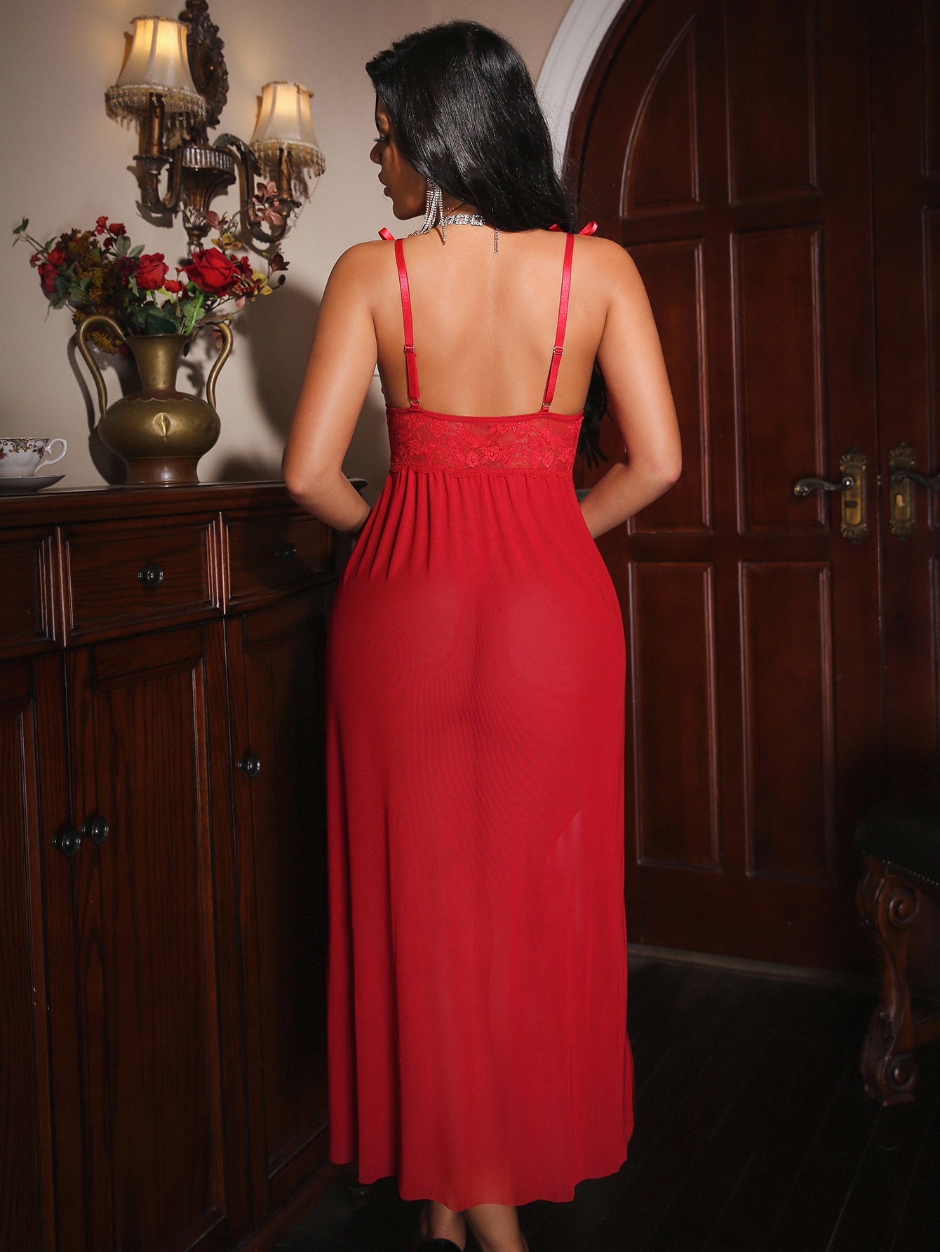 Deep V Lace Strap Sexy Pajama Dress with Side Slit