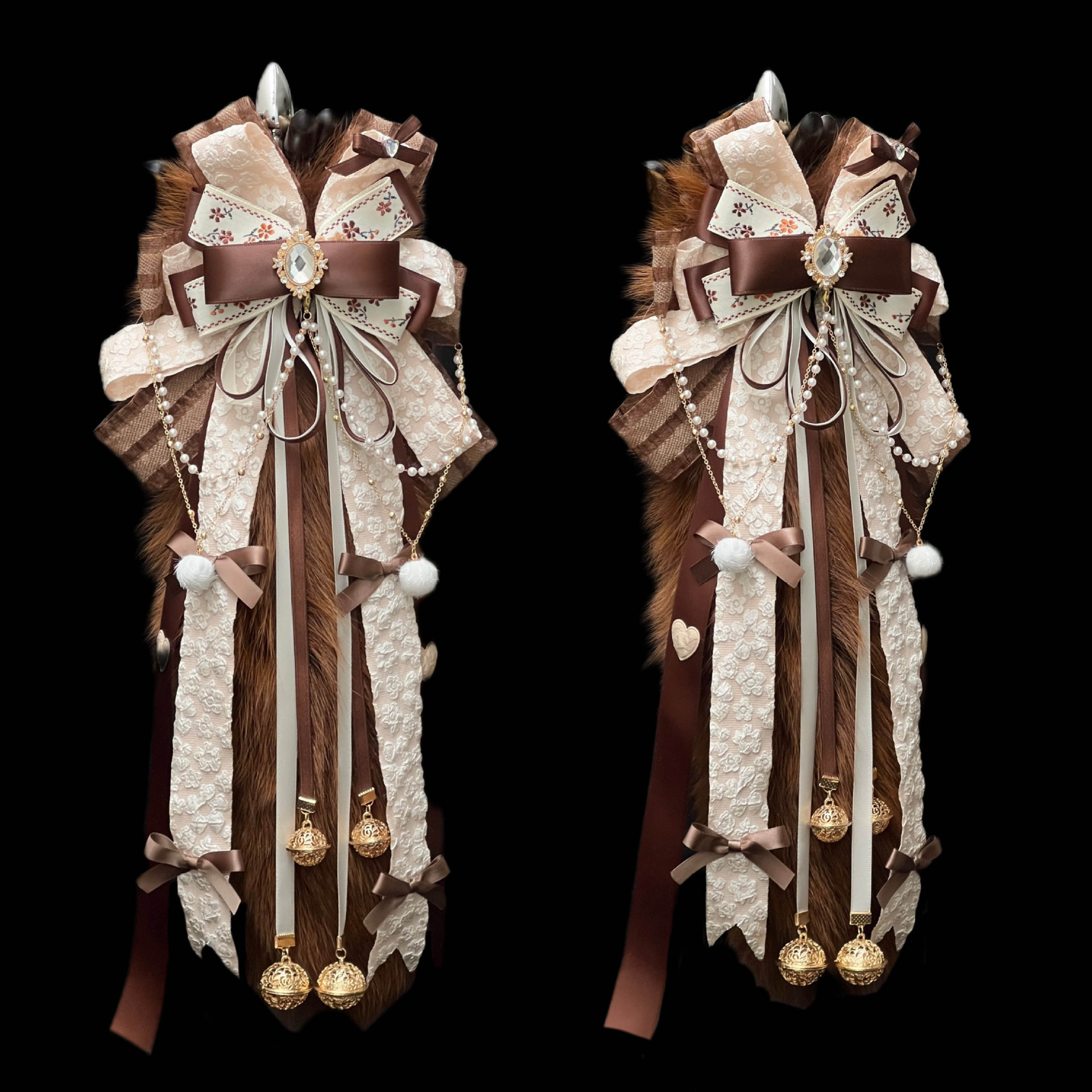 Qiqiao bow bell rings 40CM Brown Fox real fur tail butt plug removable smsex toys