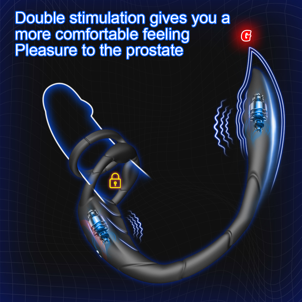 This adult product combines a semen locking ring, anal plug, and vibrator for enhanced pleasure and prolonged intimacy. It offers couples shared erotic stimulation through delayed ejaculation, anal play, and targeted vibrations, creating a unique and intense experience.