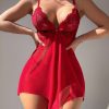 Sexy Lace Bow Suspender See-Through Pleated Dress Lingerie