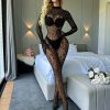 Seductive Mesh Lingerie: Long Sleeve Bodysuit Stockings