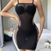 Sexy lingerie European and American Women’s sexy black hollow hip skirt Dew mesh jacquard perspective w645