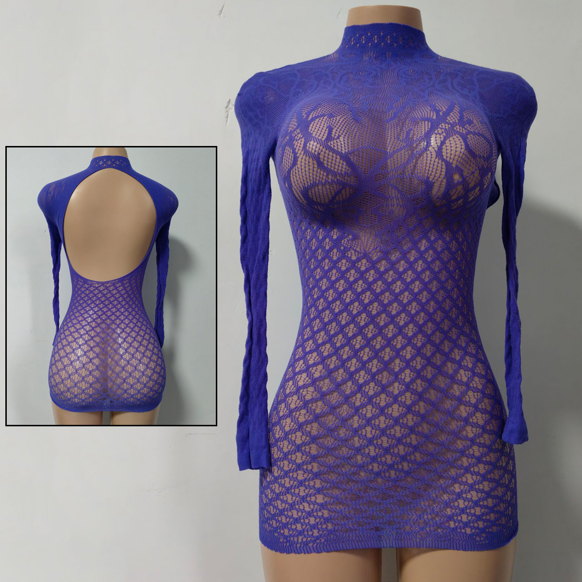 Sexy Mesh Cut-Out Backless Long Sleeve Bodysuit Jumpsuit