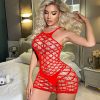 This daring lingerie piece features a provocative European/American-inspired fishing net design with intricate jacquard detailing. The revealing, perspective net wrap contours to the hips, creating a seductive silhouette. Its unique selling point is the bold combination of texture and exposure, offering a confident and alluring look.