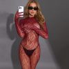 Sexy Fishnet Long Sleeve Bodysuit with Closed Crotch