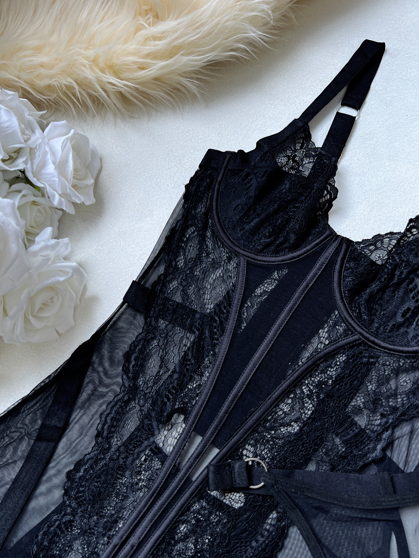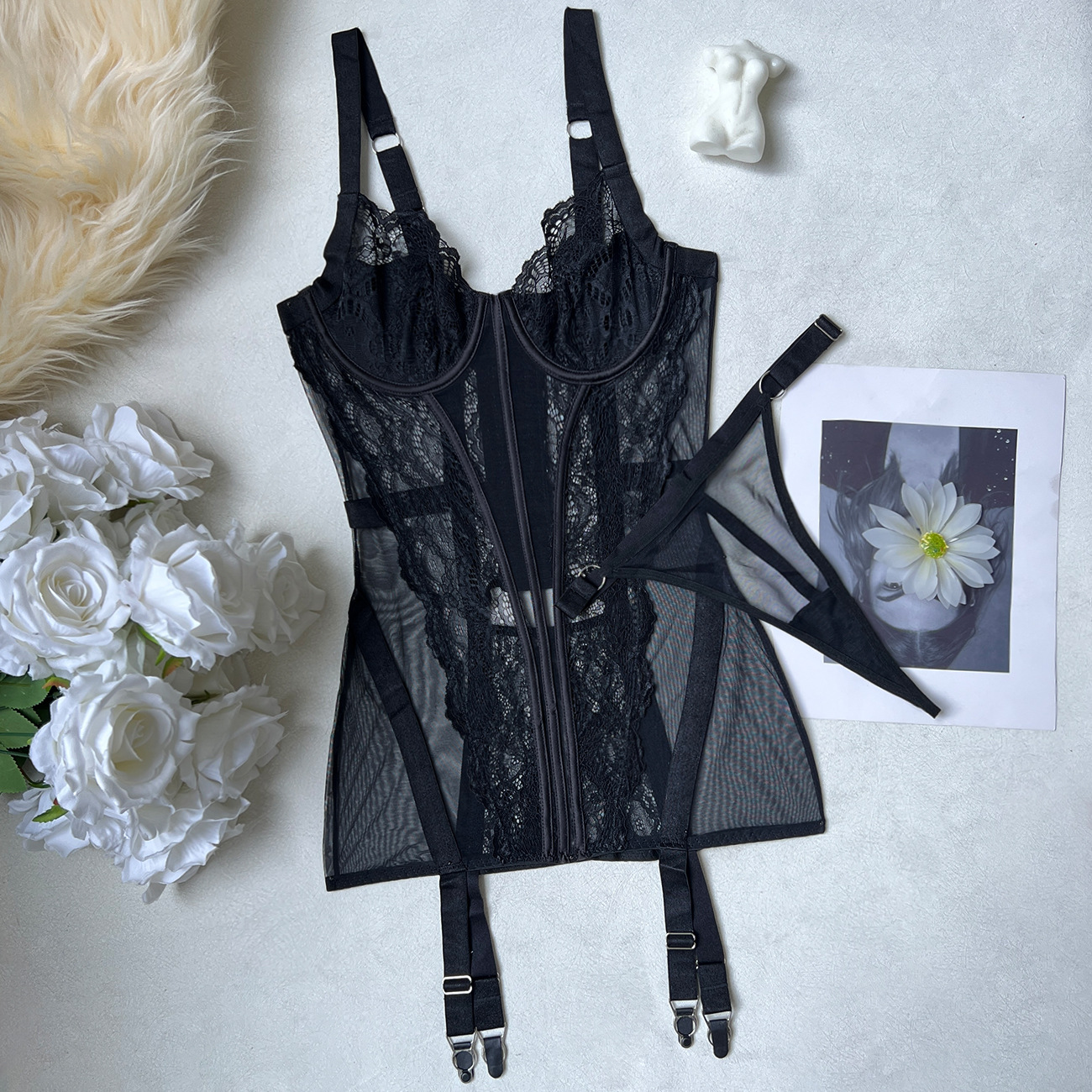 Sexy Lace See-Through Mini Skirt Two-Piece Lingerie Set