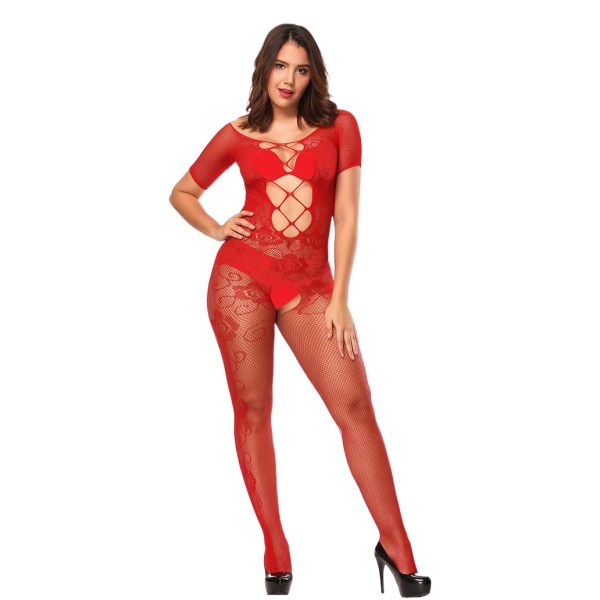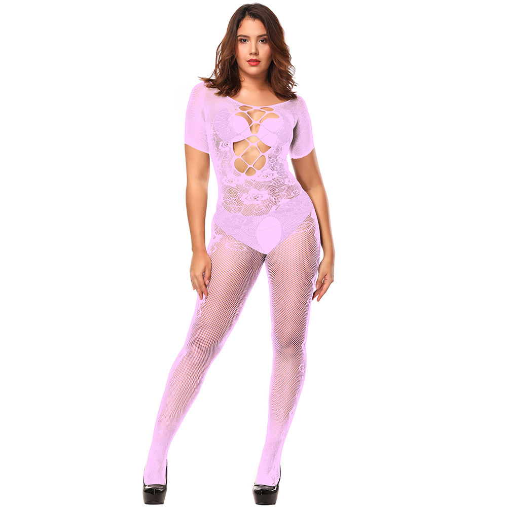 Sexy Nets Sexy Jumpsuit Pajamas Rose Jacquard Spandex Open Short Sleeve Backless Exposure Tights w217