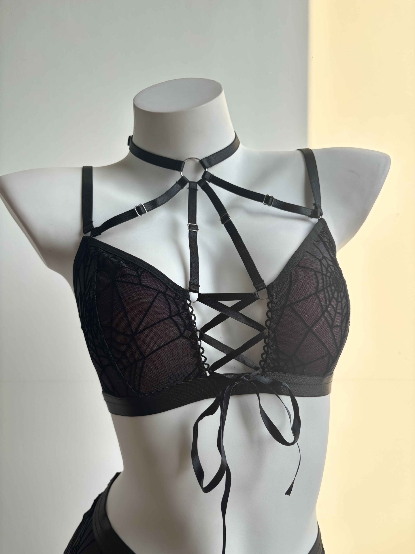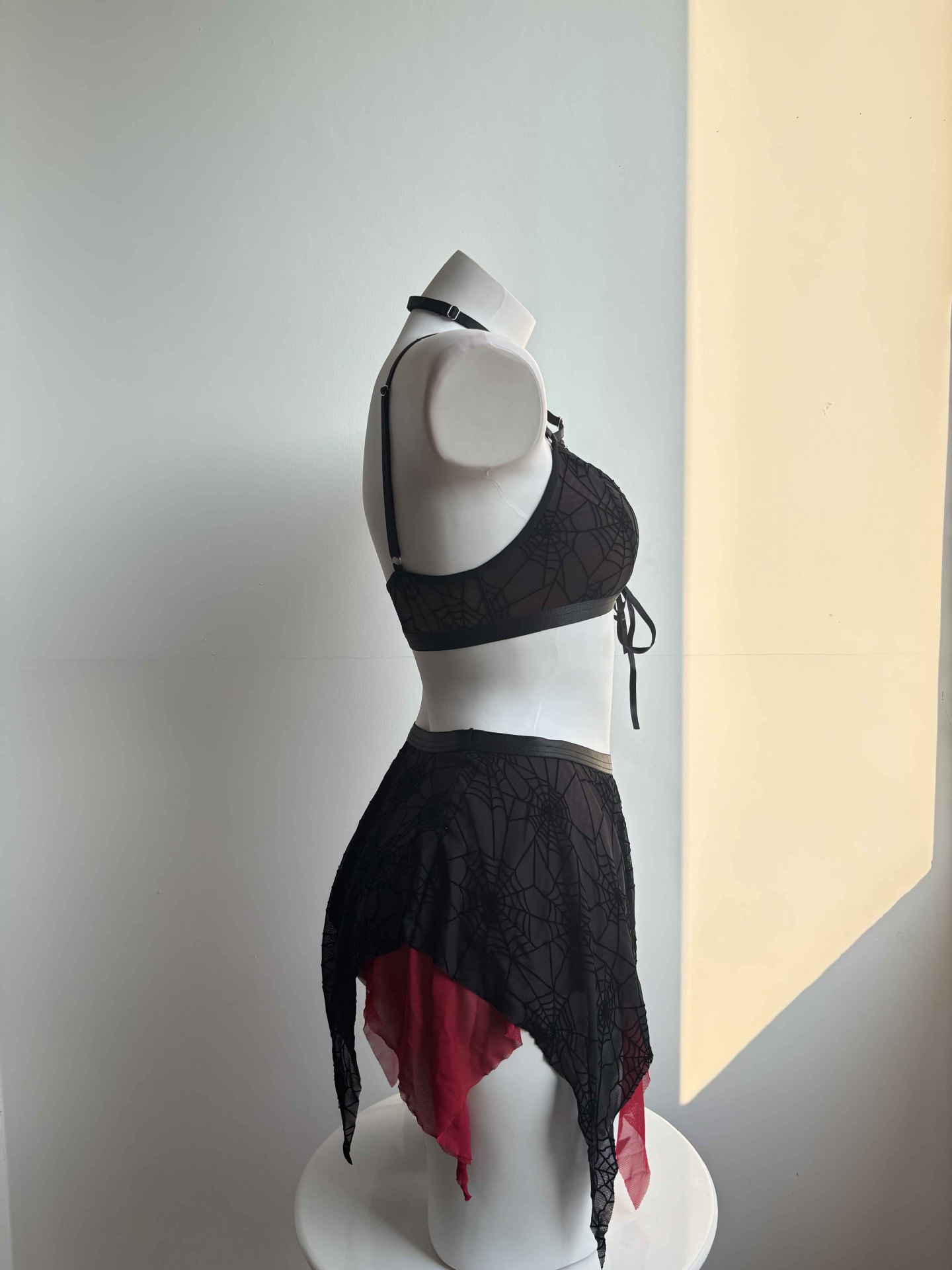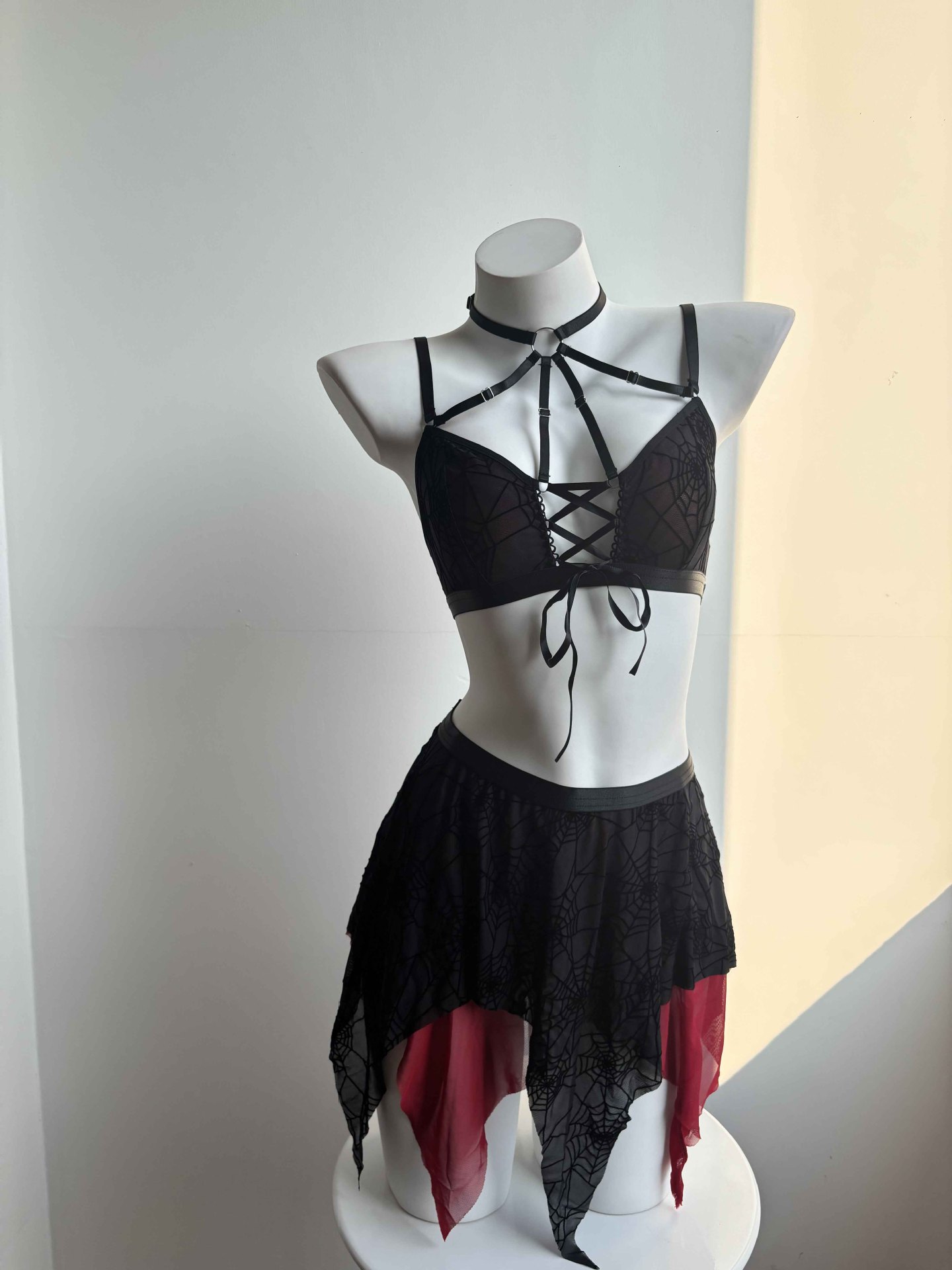 Black Red Ball Queen Sheer Mesh Tied Lingerie Top