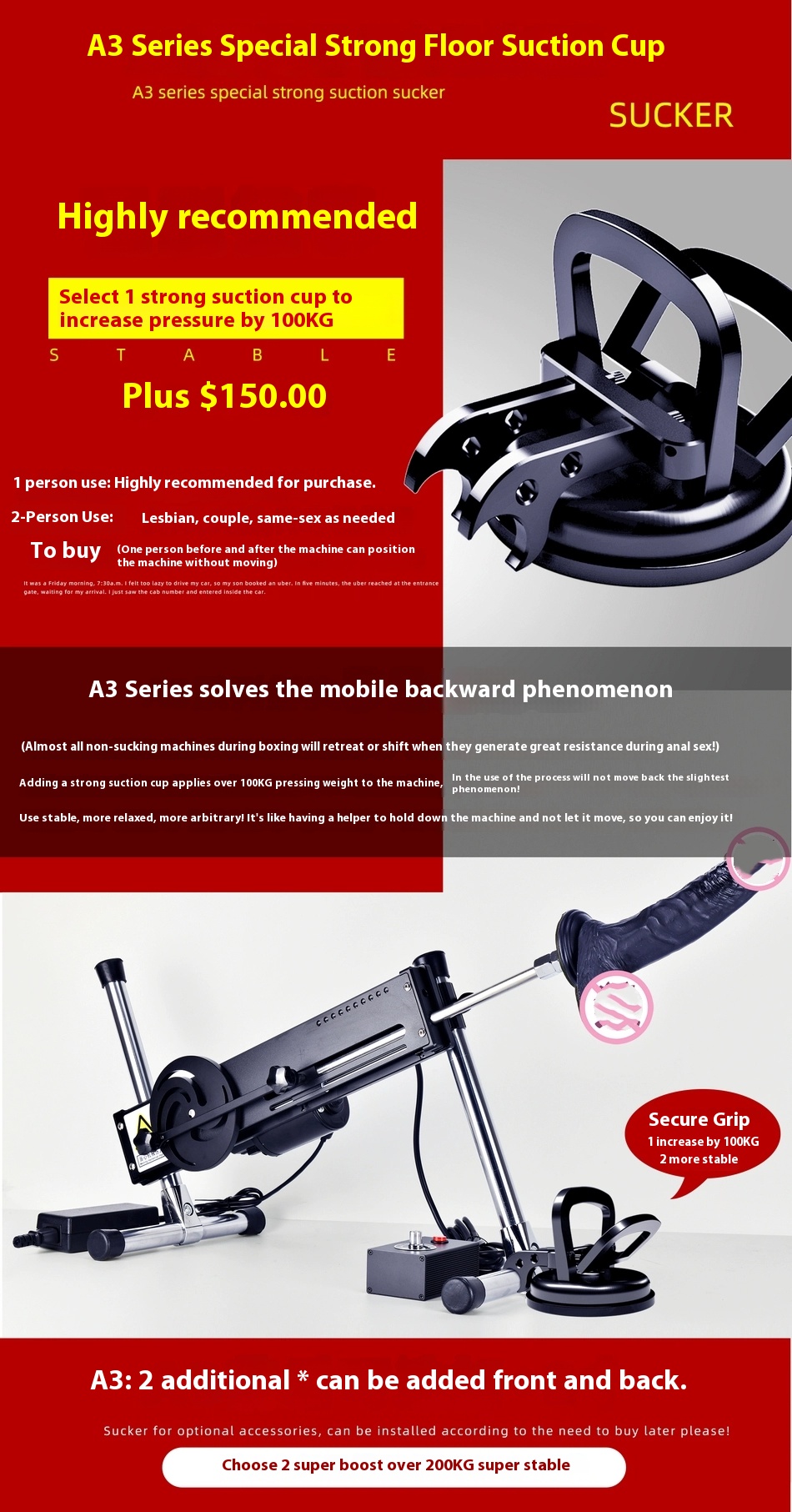 Shenai A16 Sex Machine Booster: 100kg Press, Powerful Suction Cup
