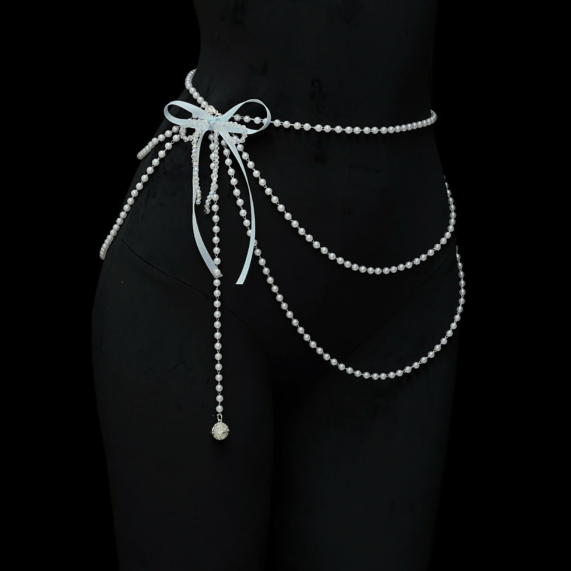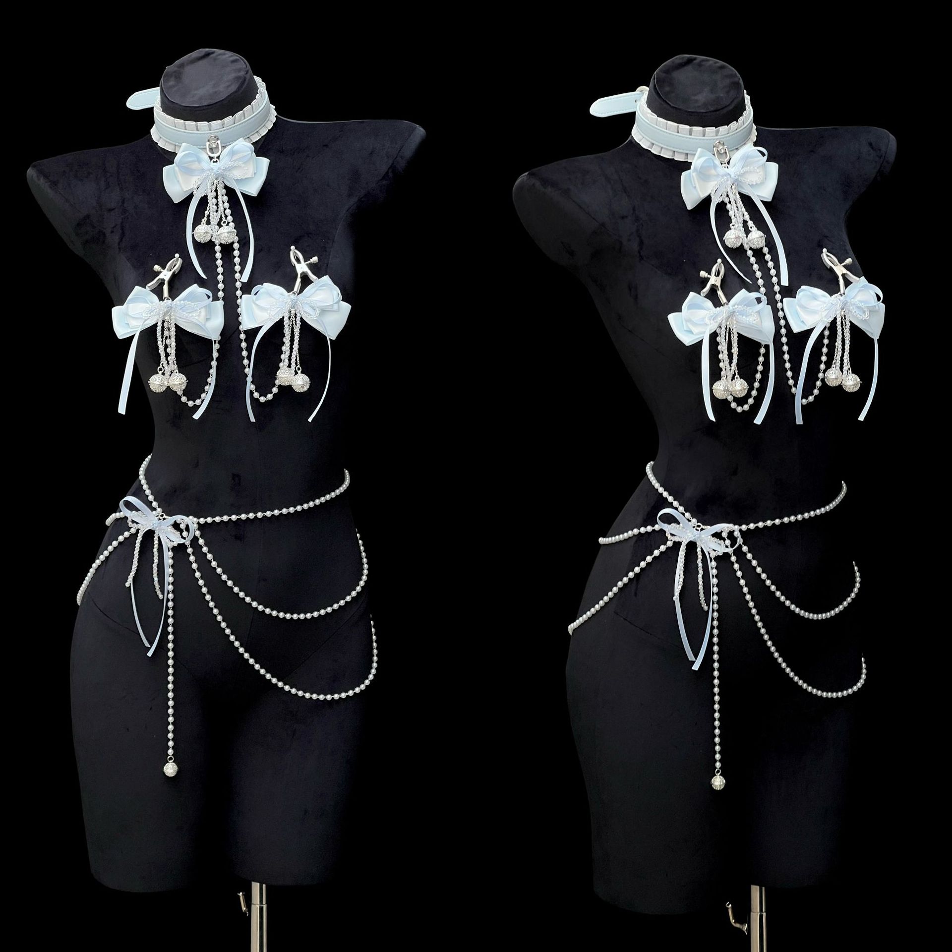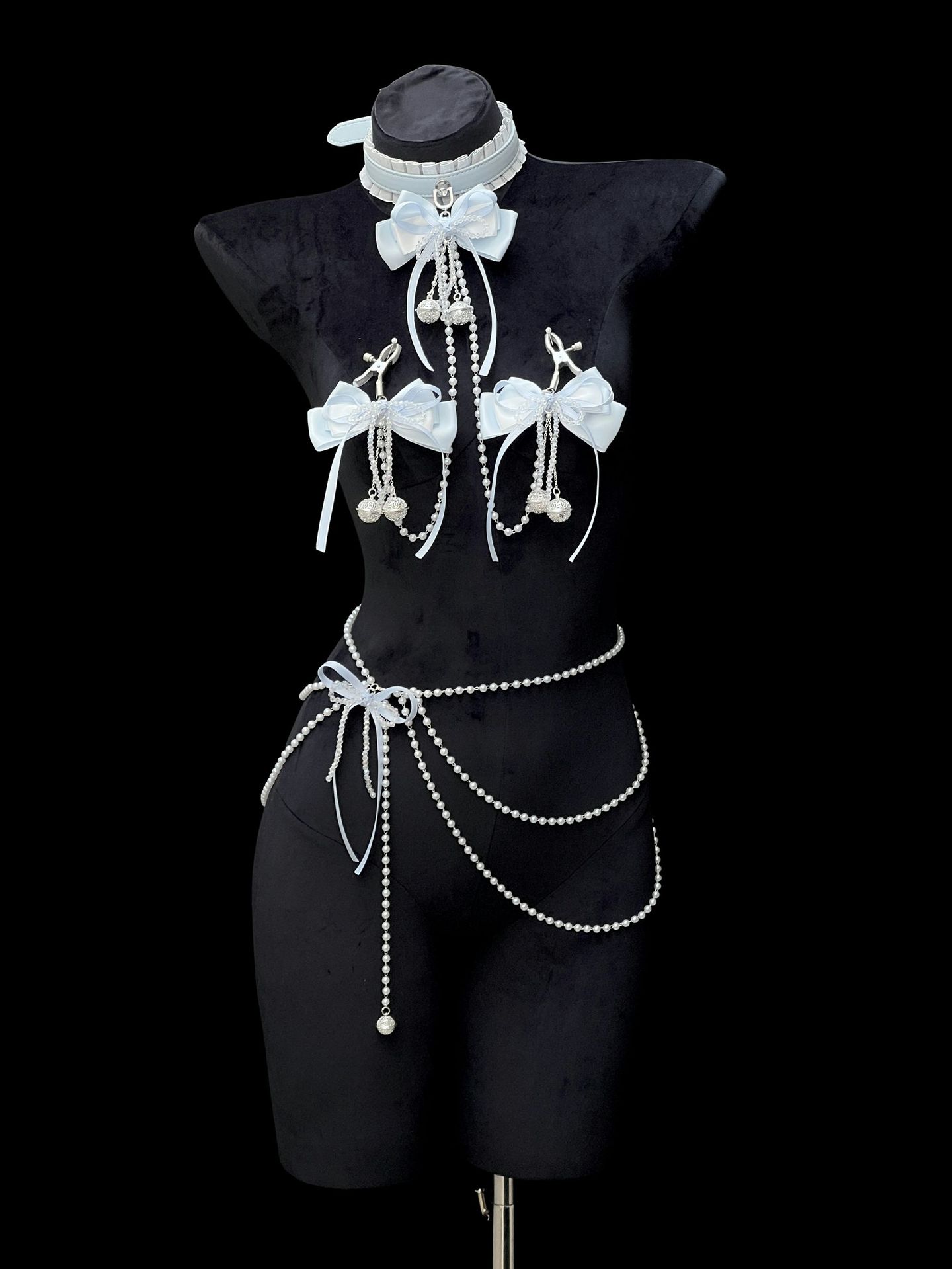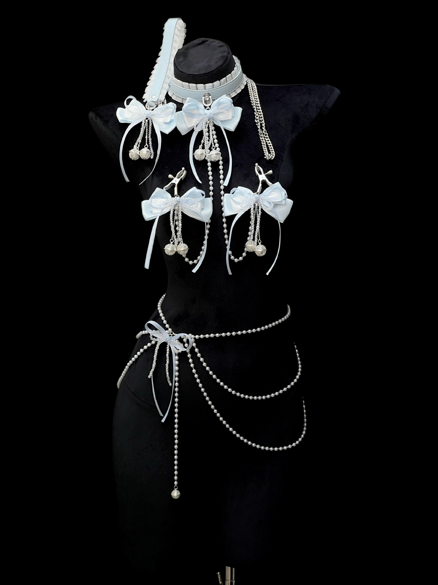 60cm white fox real fur tail, 50cm big bow streamer, strap detachable design. The middle small bowknot of the tail is fixed and cannot be disassembled.