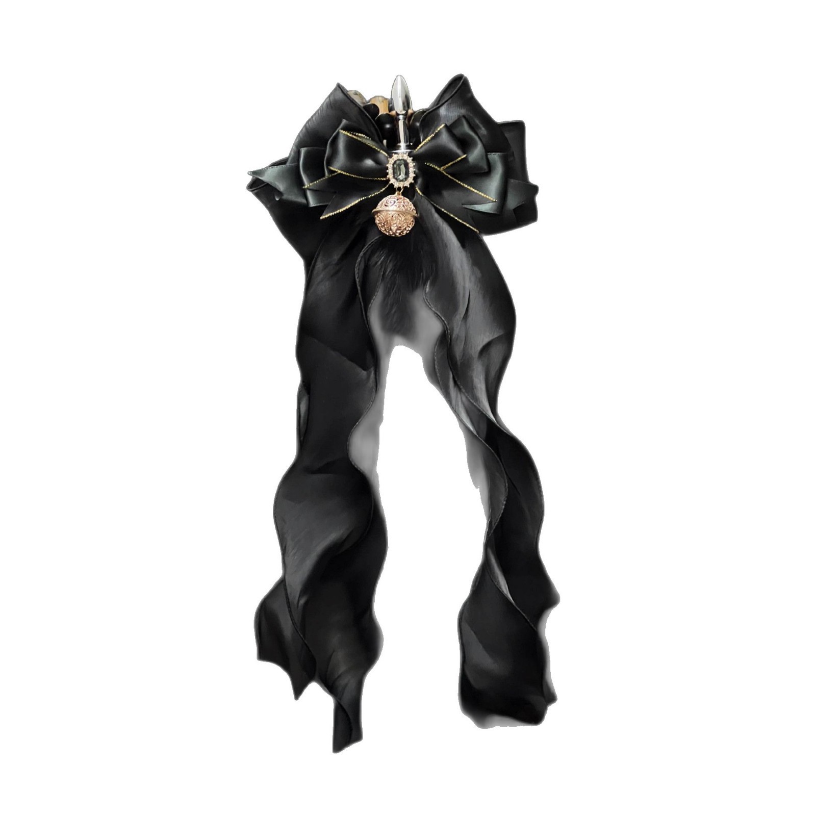 Unleash your inner desires and transform your intimate moments with the **SM Sex Toys Collar Cute Bow Breast Clip Bell Ring 40CM Black Fox Real Hair Tail Anal Plug Small**.