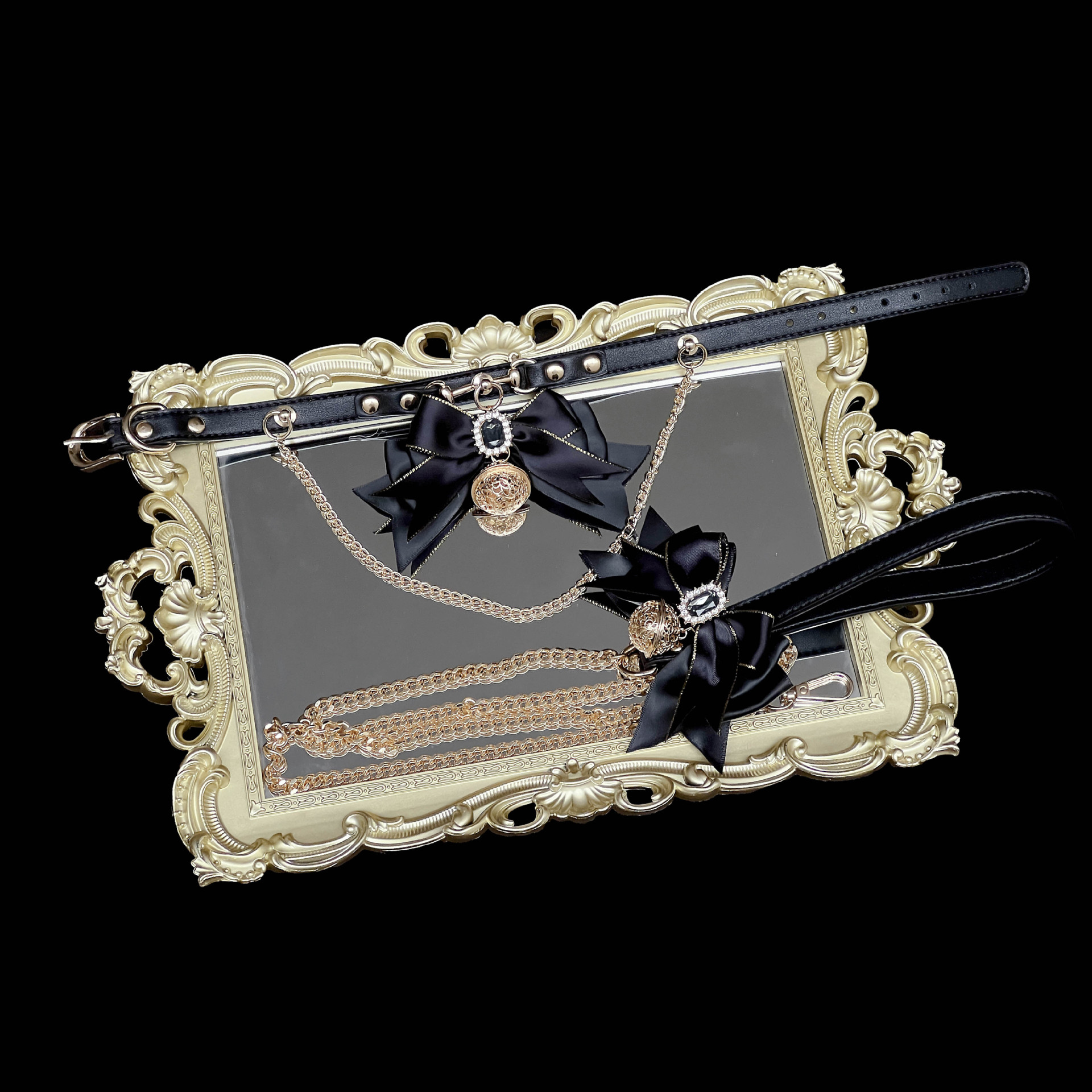 The **adjustable 40CM collar** features a **cute bow design**, adding a charming yet commanding aesthetic. Made from high-quality materials, it ensures comfort while maintaining durability. The attached **bell ring** adds an auditory element, heightening anticipation and excitement with every movement.