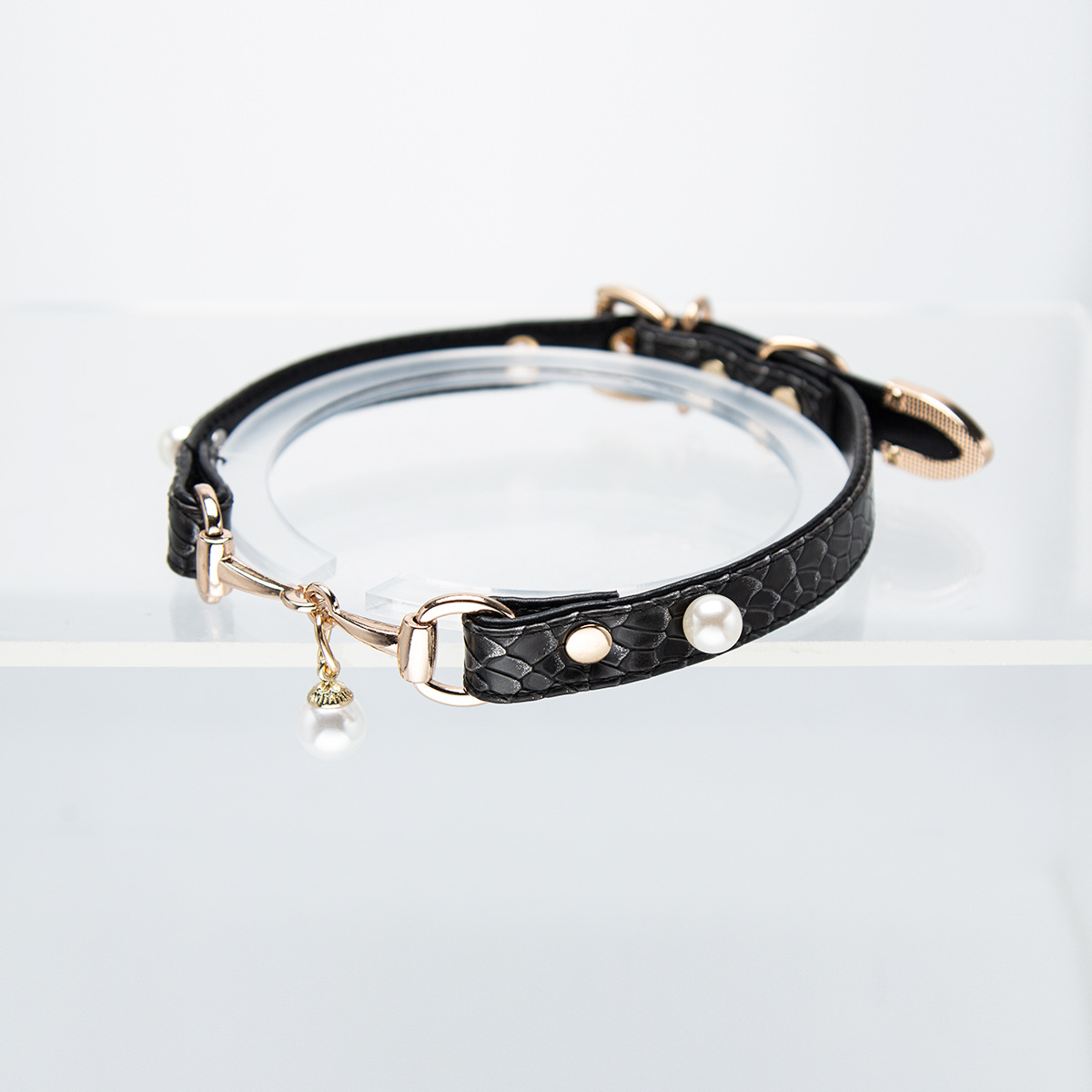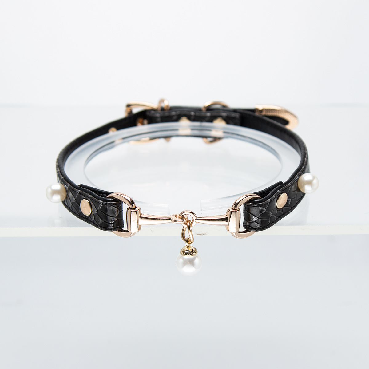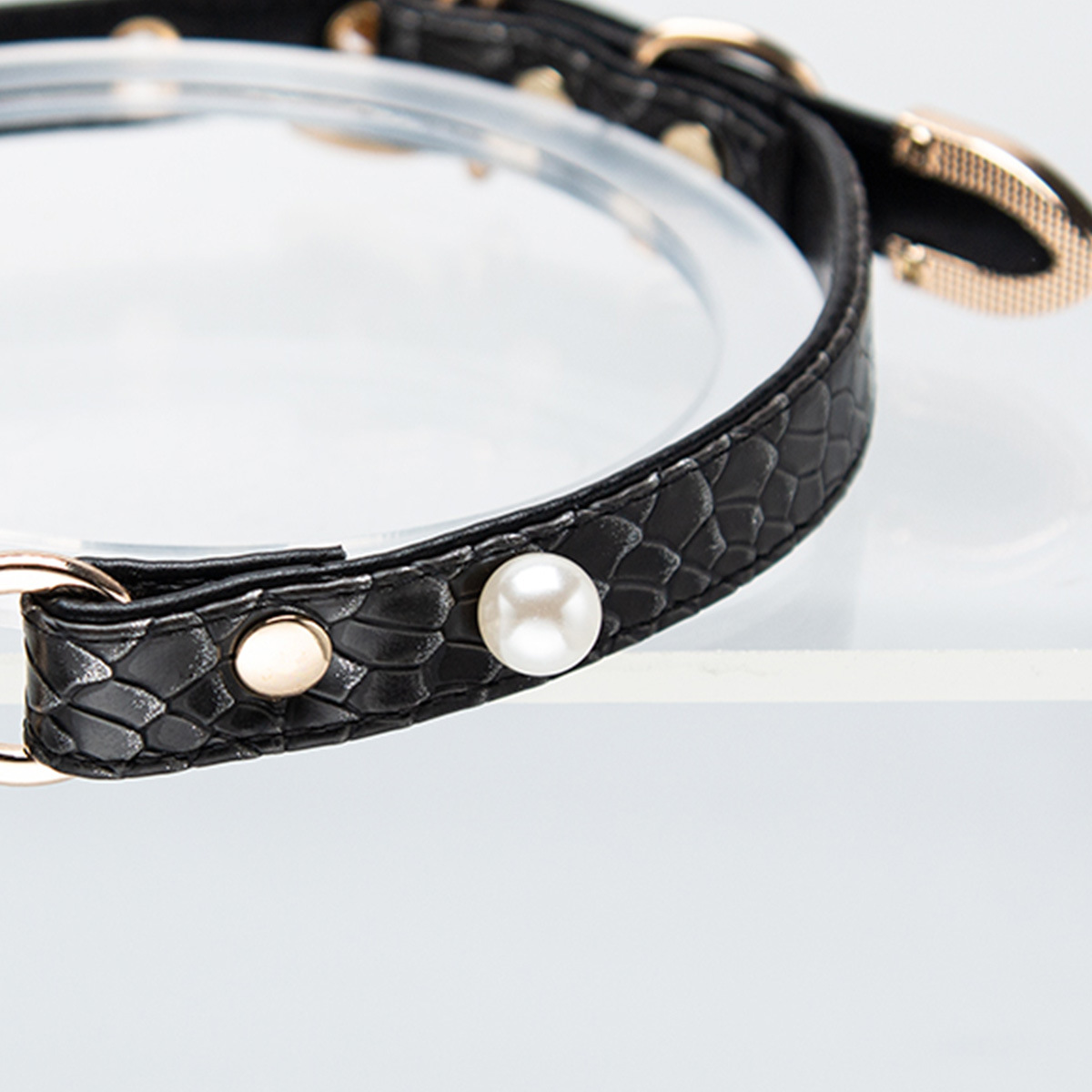 Snakeskin Pearl Pendant Choker: Unique, stylish, and playful necklace featuring a snakeskin chain, pearl pendant, and puppy-inspired design.