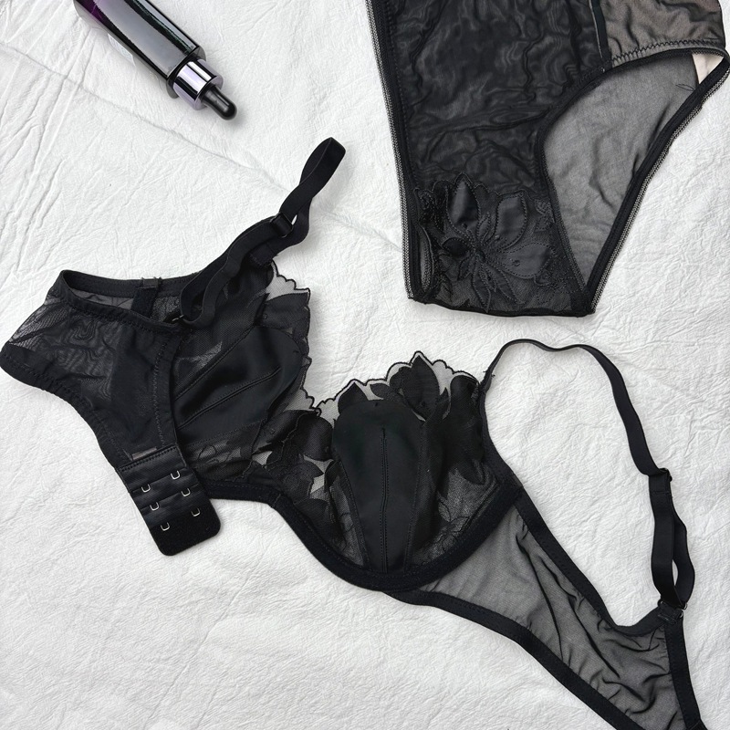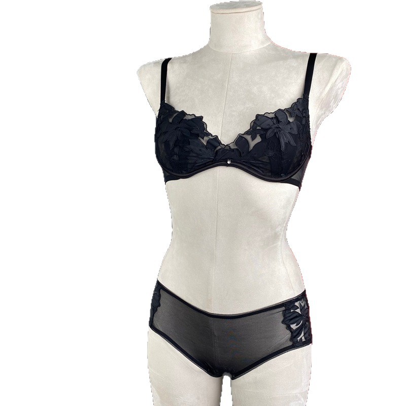 Fj Laser Floral Embroidery Memory Steel Ring Bra & Low Waist Briefs Set – Women’s Quality Intimates