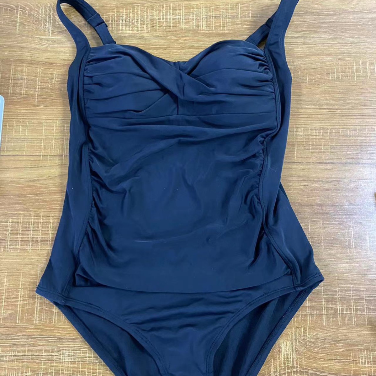 Women’s Black Ruched Padded One-Piece Swimsuit – High Support Wide Straps