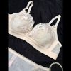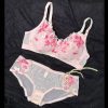 Laser Embroidered Wire-Free Breathable Cotton Bra Set with Thin Mesh Splicing