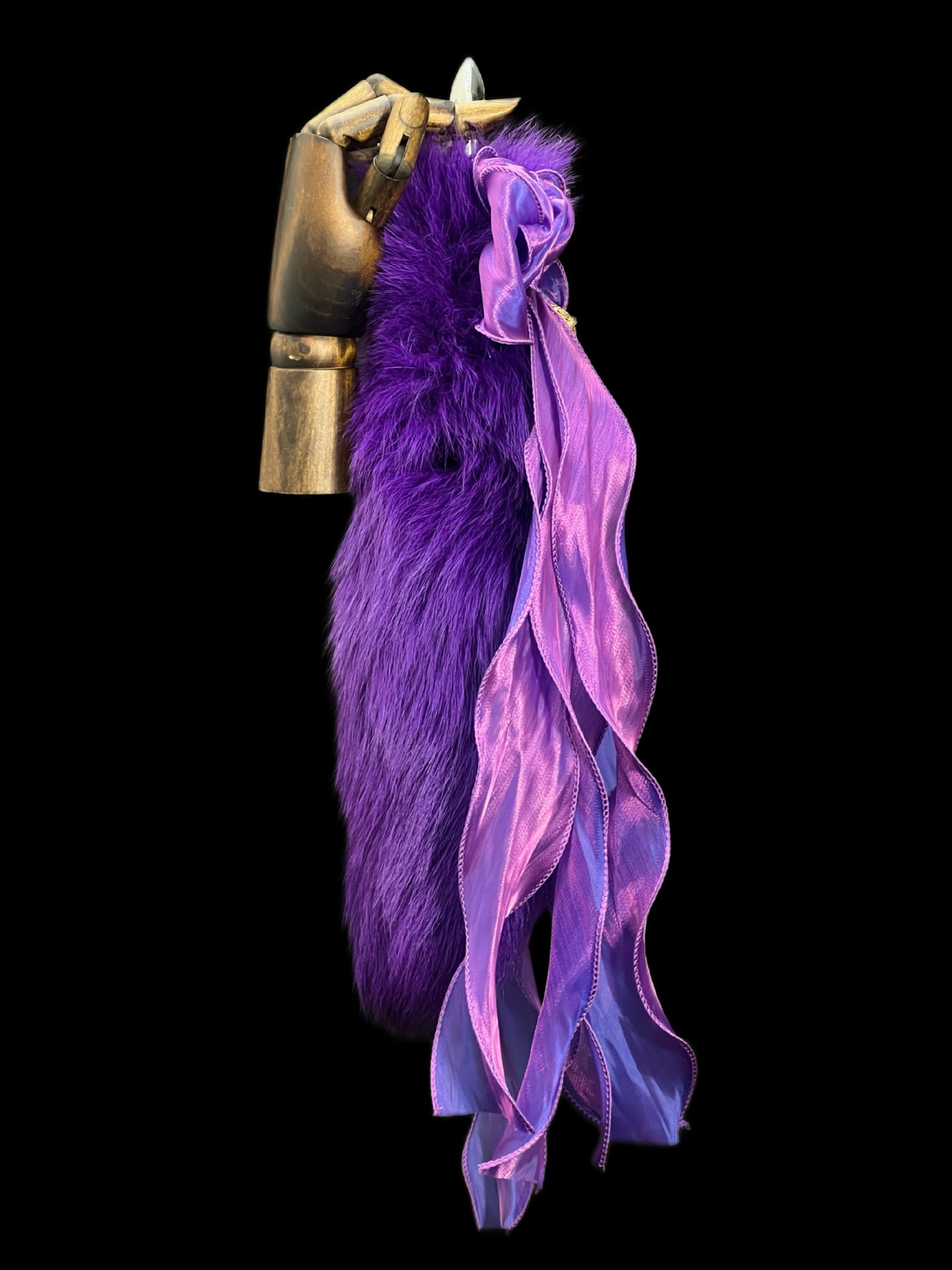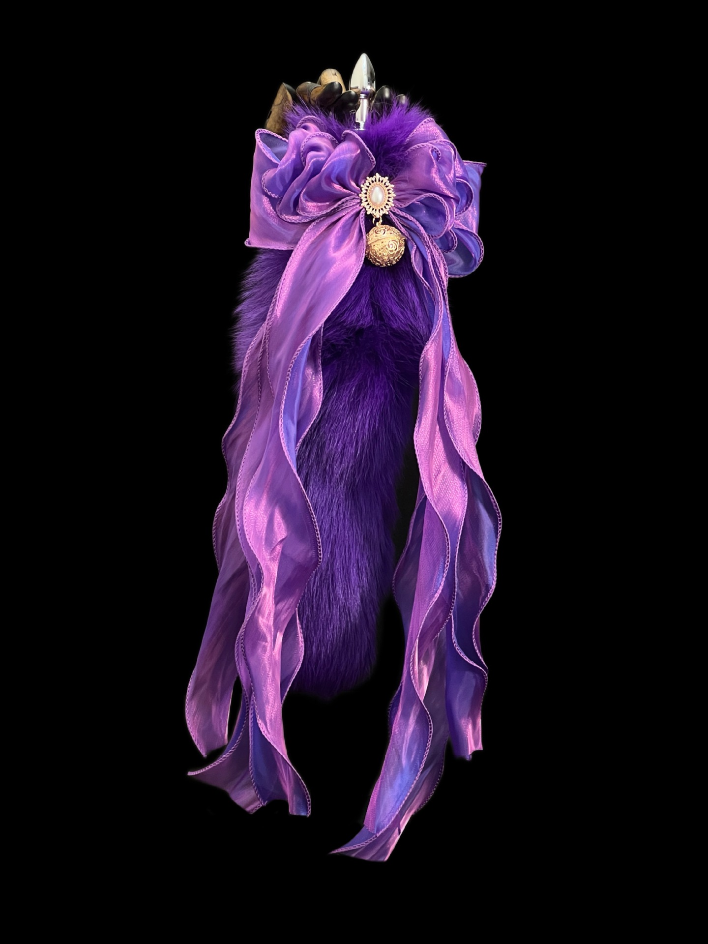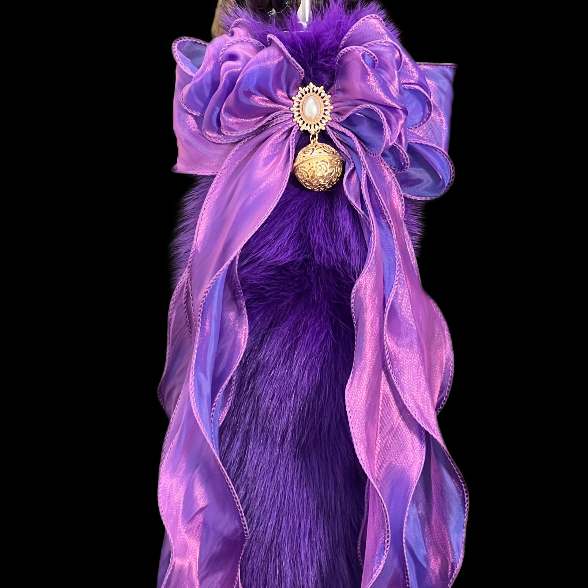 Starlight Purple 40cm Fox Fur Tail Anal Plug – Deep Pearlescent Purple Bow Bell