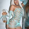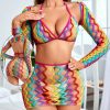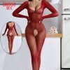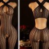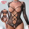 Women’s Long Sleeve Hollow Out Mesh Fishnet Bodysuit Bandeau Bikini Style Lingerie